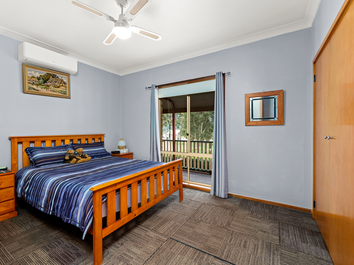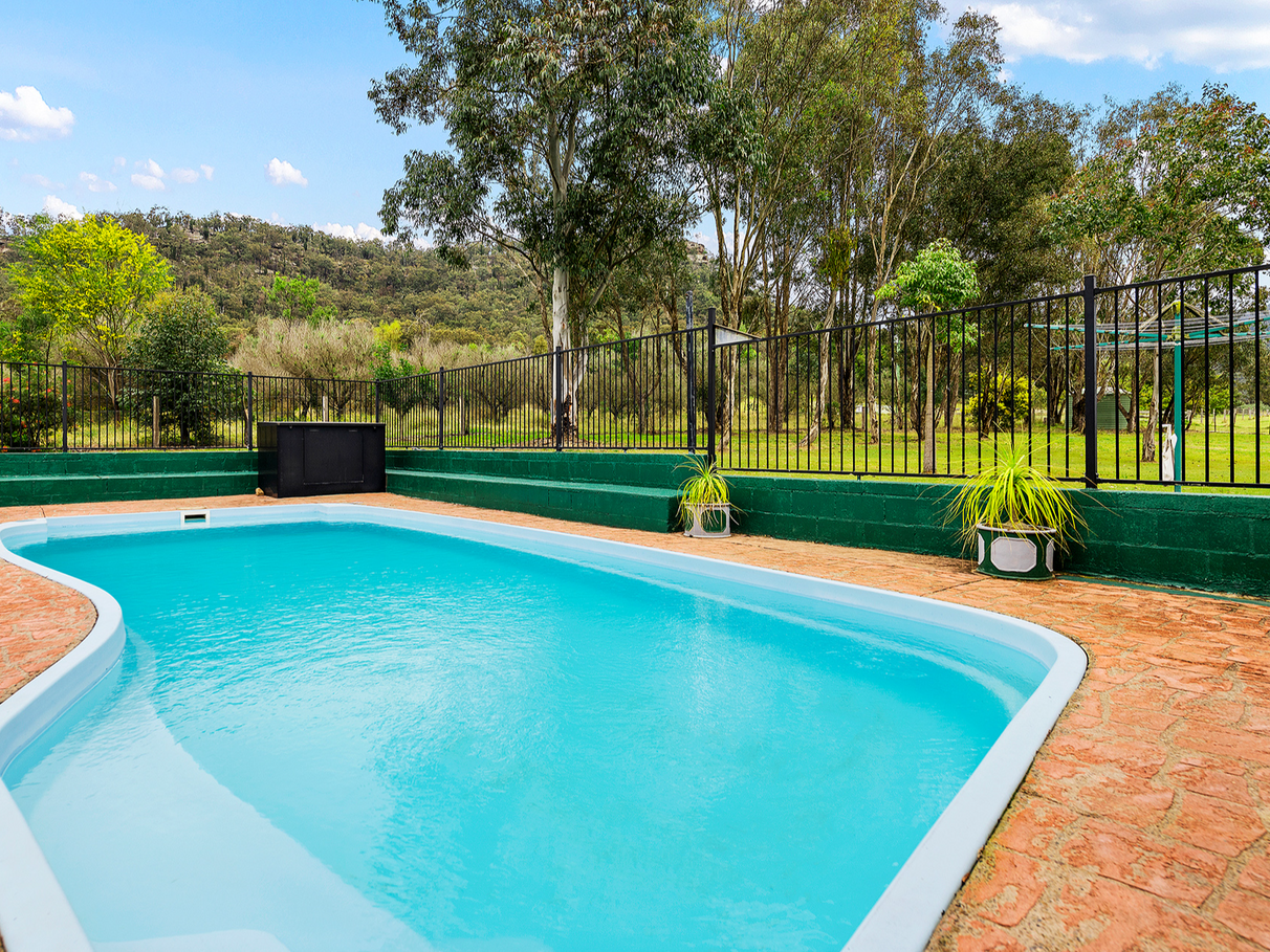 Designed with both large-scale entertaining and family relaxation and comfort in mind, the effortless floor plan incorporates gorgeous natural light, high ceilings, timber floors and high-quality finishes and fittings creating a fresh and airy atmosphere throughout. The spacious open plan living area includes a cosy combustion fire flowing out from the country-style timber kitchen. The spacious interiors flow out at different points to the complete and wide wrap-around verandah which is the perfect place to entertain guests whilst enjoying the magical outlook. Or, have a dip in the 9 metre in ground swimming pool! Comprising three bedrooms, all with built in robes ceiling fans as well as air conditioner in main bedroom. New carpets will be laid before settlement.