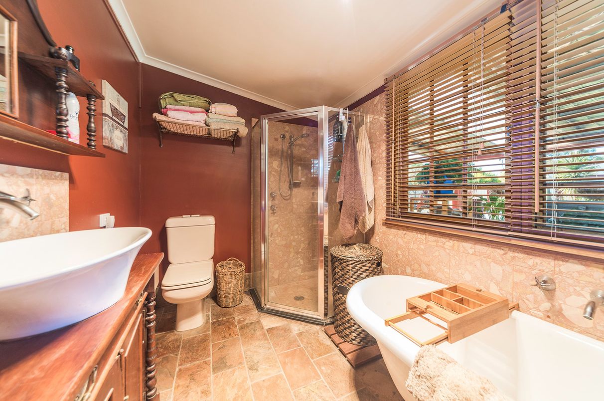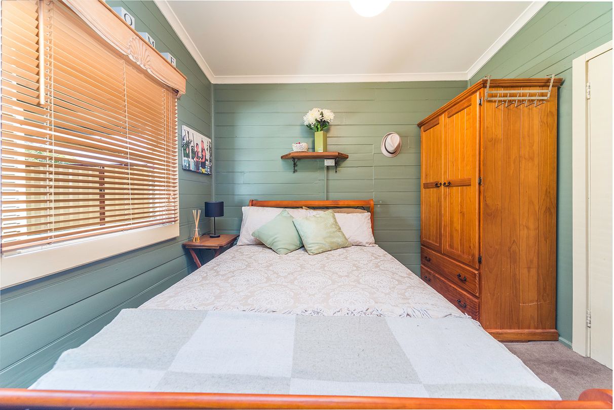 The delightful, renovated bathroom comes with antique claw-foot bath, separate shower, toilet and timber vanity with modern bowl sink, and services the two bedrooms - the master with double freestanding robes.