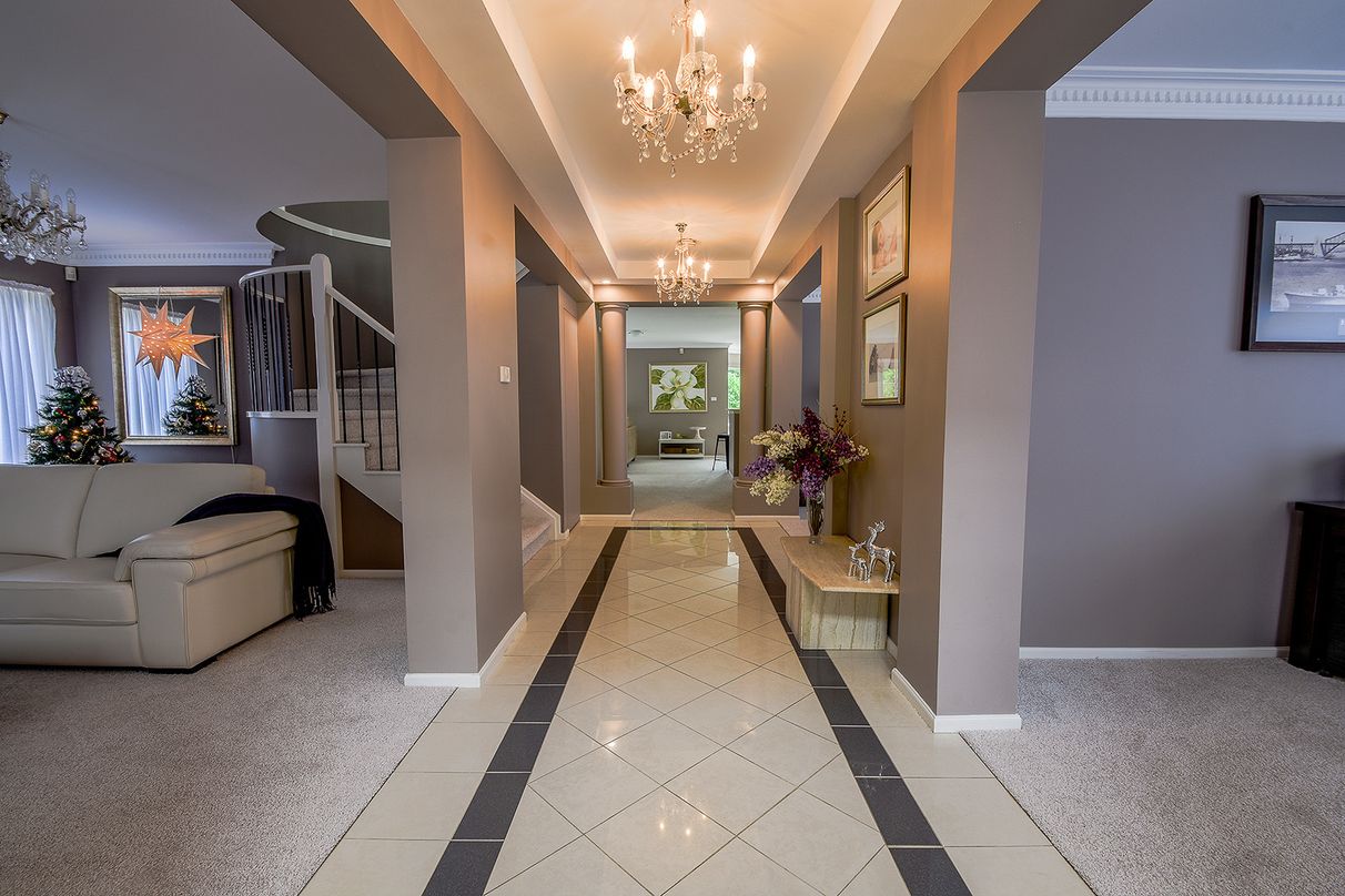 A grand entry lit with chandeliers sets the pace while you step through the home office or library, an enormous formal lounge with open fireplace and a separate, formal dining - both privy to the centrepiece, spiral staircase.
