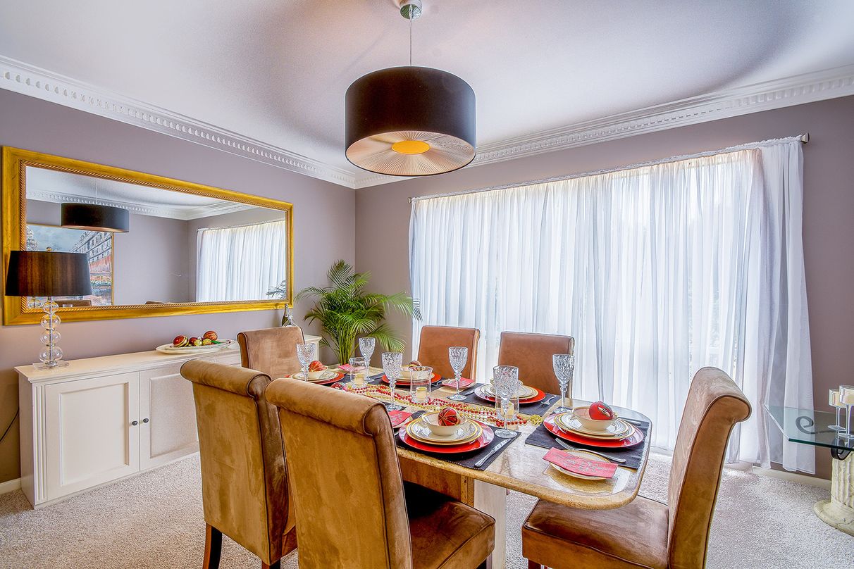 Tastefully melding classic charm with modern luxury, the home has been thoughtfully brought up to speed with a contemporary colour palette and plush carpets, complemented by pops of white, decorative cornices, modern light fittings and large picture windows.