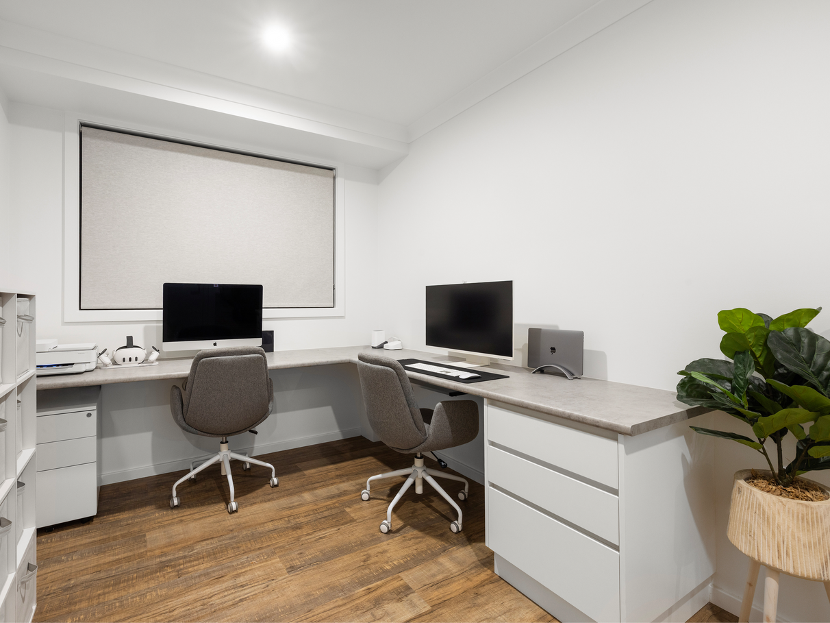 Step inside to find four spacious bedrooms, two stylish bathrooms, a dedicated office, and a separate media room, offering plenty of space for work, relaxation, and family life.
