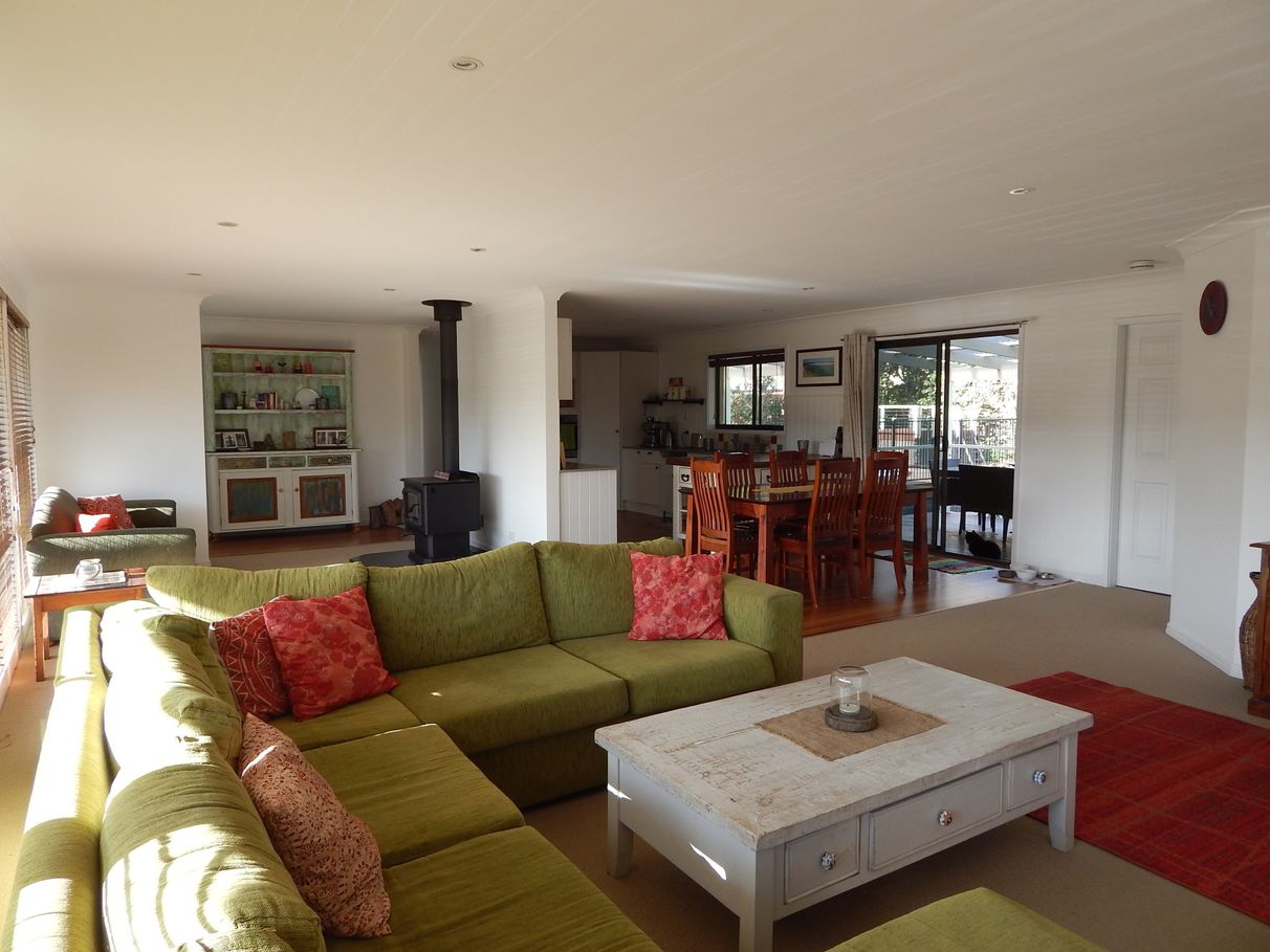Tastefully renovated open plan kitchen dining double lounge room complete with slow combustion wood fire heater.