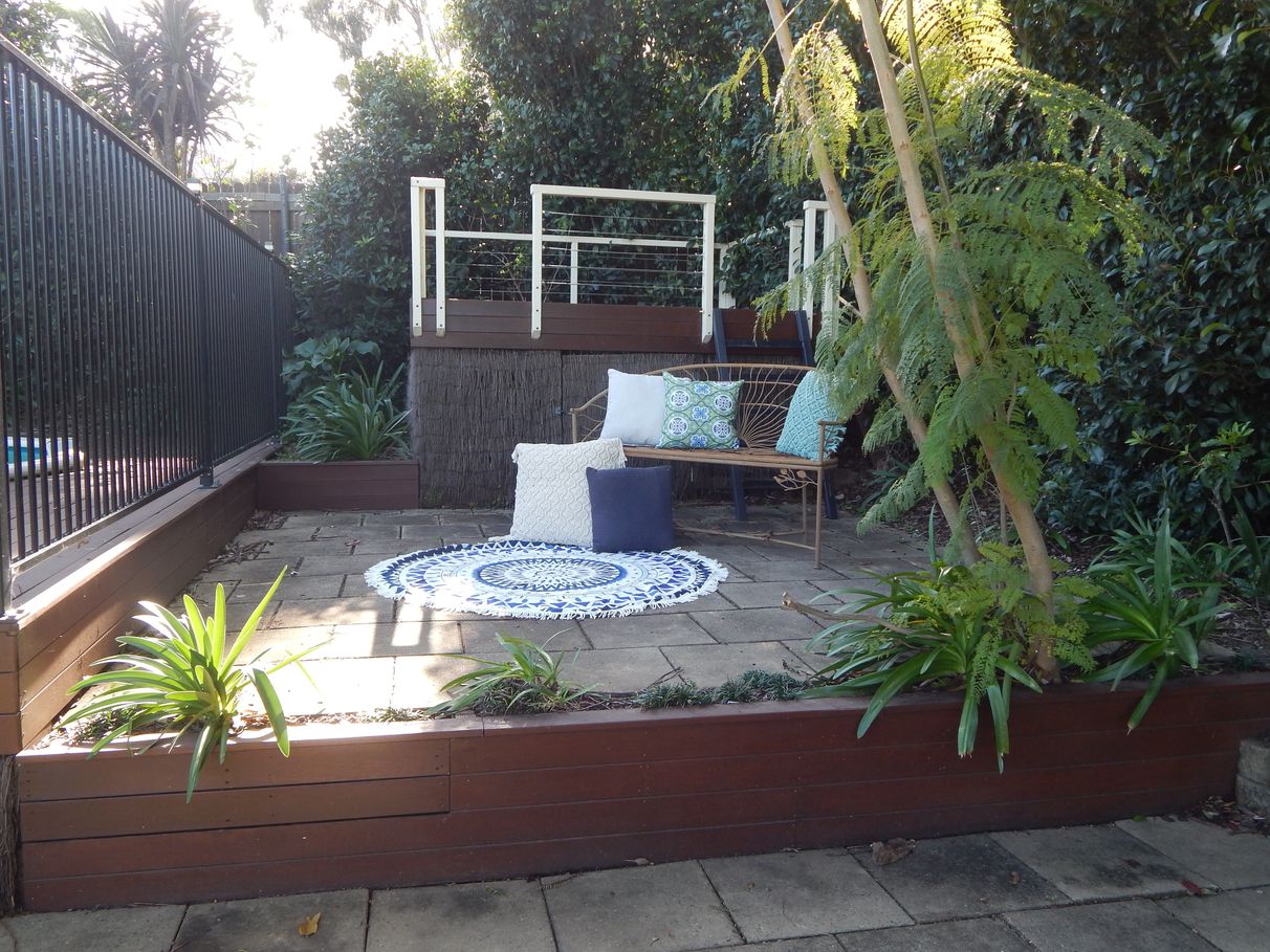 Private back yard includes pool view of Cambewarra Mountain and access to the flow through garage.