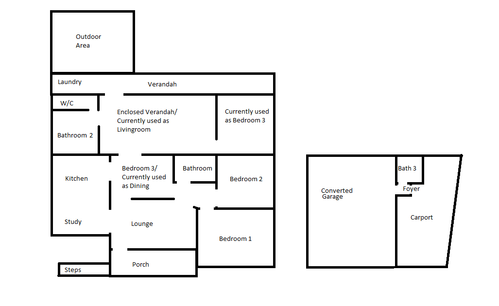 This original 3 bedroom home has 2 separate living areas (with second living located in converted veranda), small dining (original bedroom 3), and two updated bath rooms and features polished floorboards throughout. Added features include wardrobes and ceiling fans, air conditioning, renovated kitchen with dishwasher and included built in office/study area which make it both practical and functional.