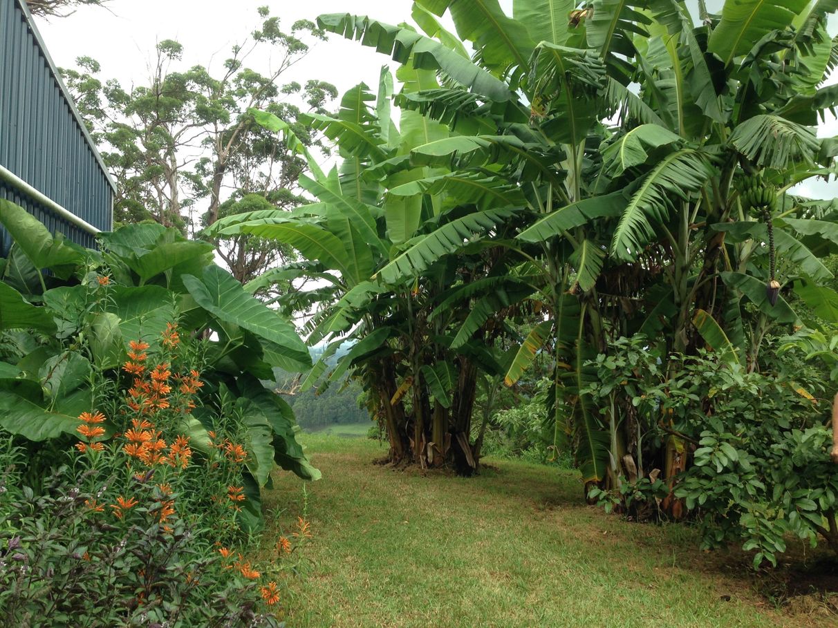 Lots of fruit trees which include, bananas, lemons, lemonade, mulberry, blood oranges, mangoes, avocado, fig,guavas, apples & more. Established veggie patches. Chemical free principles have been used with growing these.
