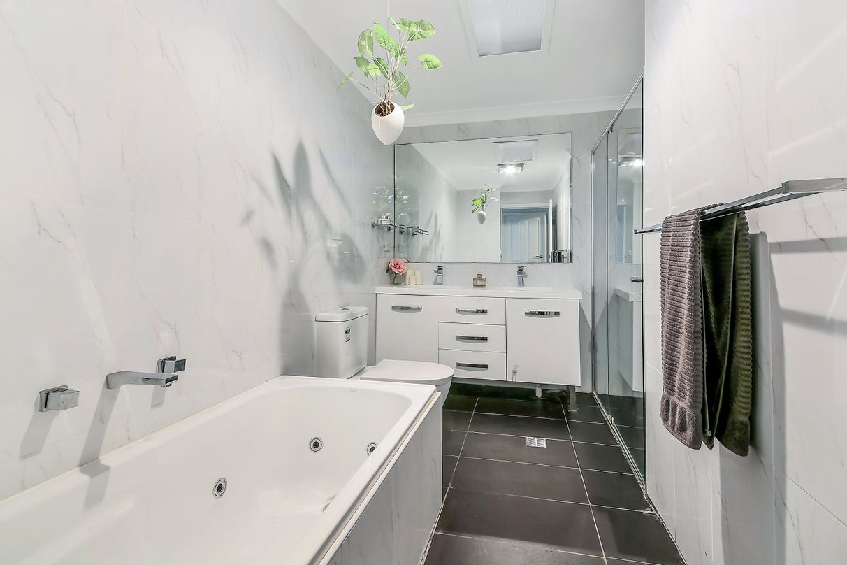 Set back on the block with a generous front yard (approx 15m W) Encompassing four generous bedrooms and two lavish bathrooms, the stylish marble-look family bathroom with spa bath, shower and twin vanities, plus a 2nd bathroom and separate laundry.