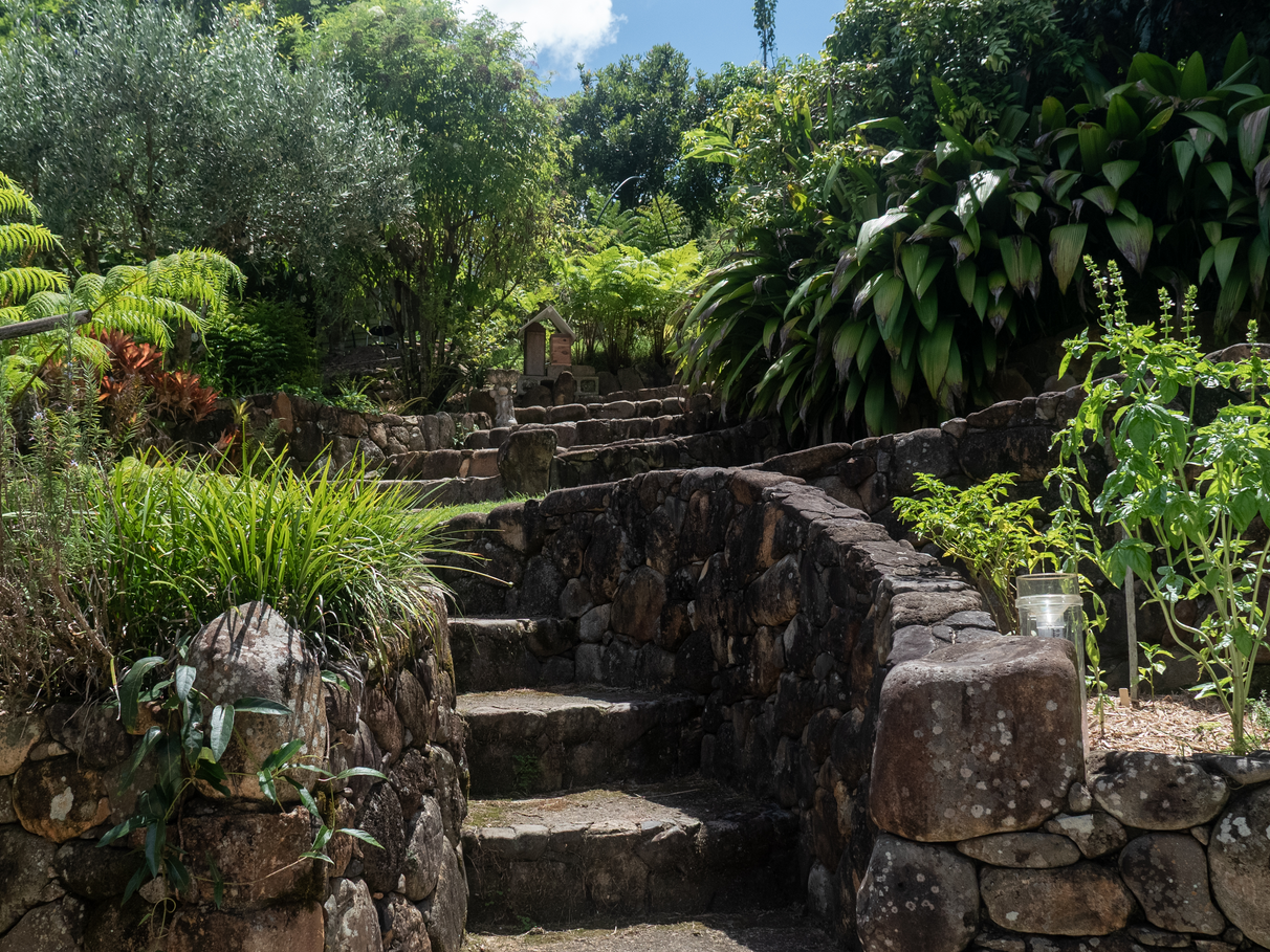 The extensive stone walls and garden terracing must be seen to be believed. The stone walls create separate, private outdoor spaces and encourage local plants and wildlife to flourish. There are vegetable garden terraces and a ‘food forest’ terrace (with orange, fig, olive, black sapote, bananas, tamarillo, mango and other established fruit trees). Two native beehives with stingless native bees can be included in the sale.