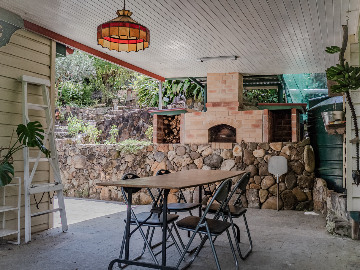 A large wood fire pizza oven and undercover patio look out to the garden terraces. Great for entertaining.