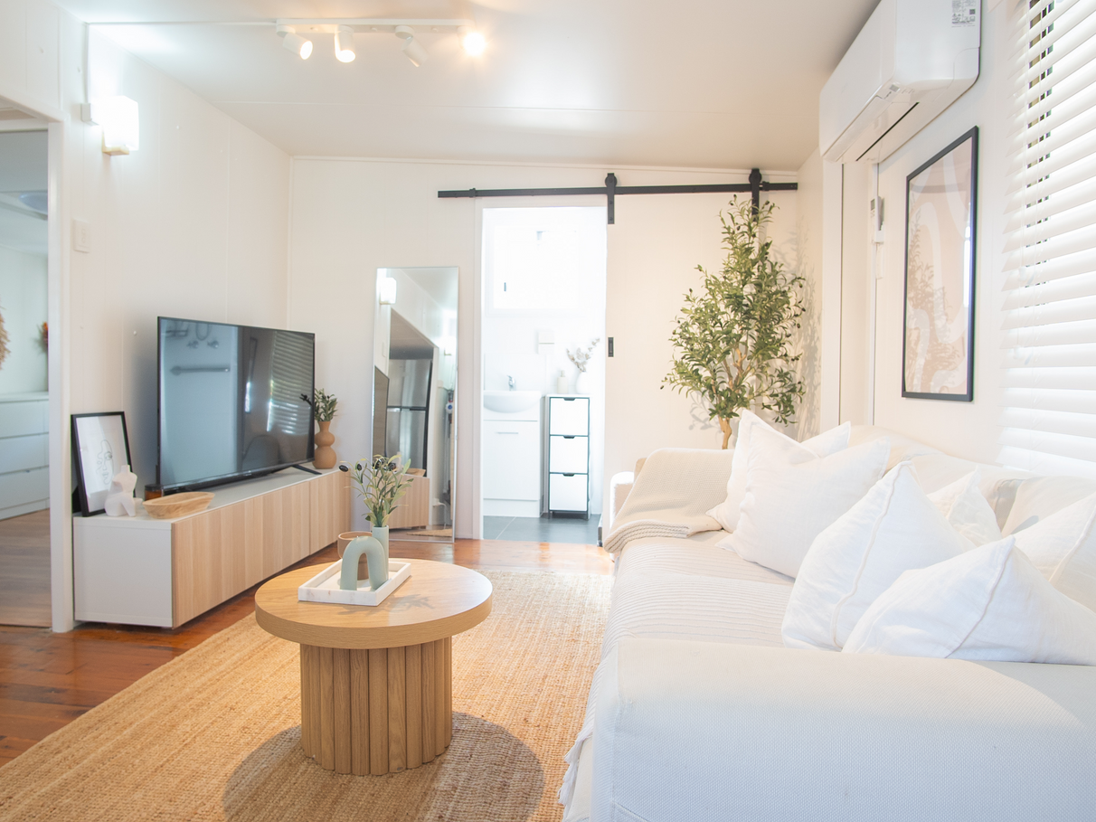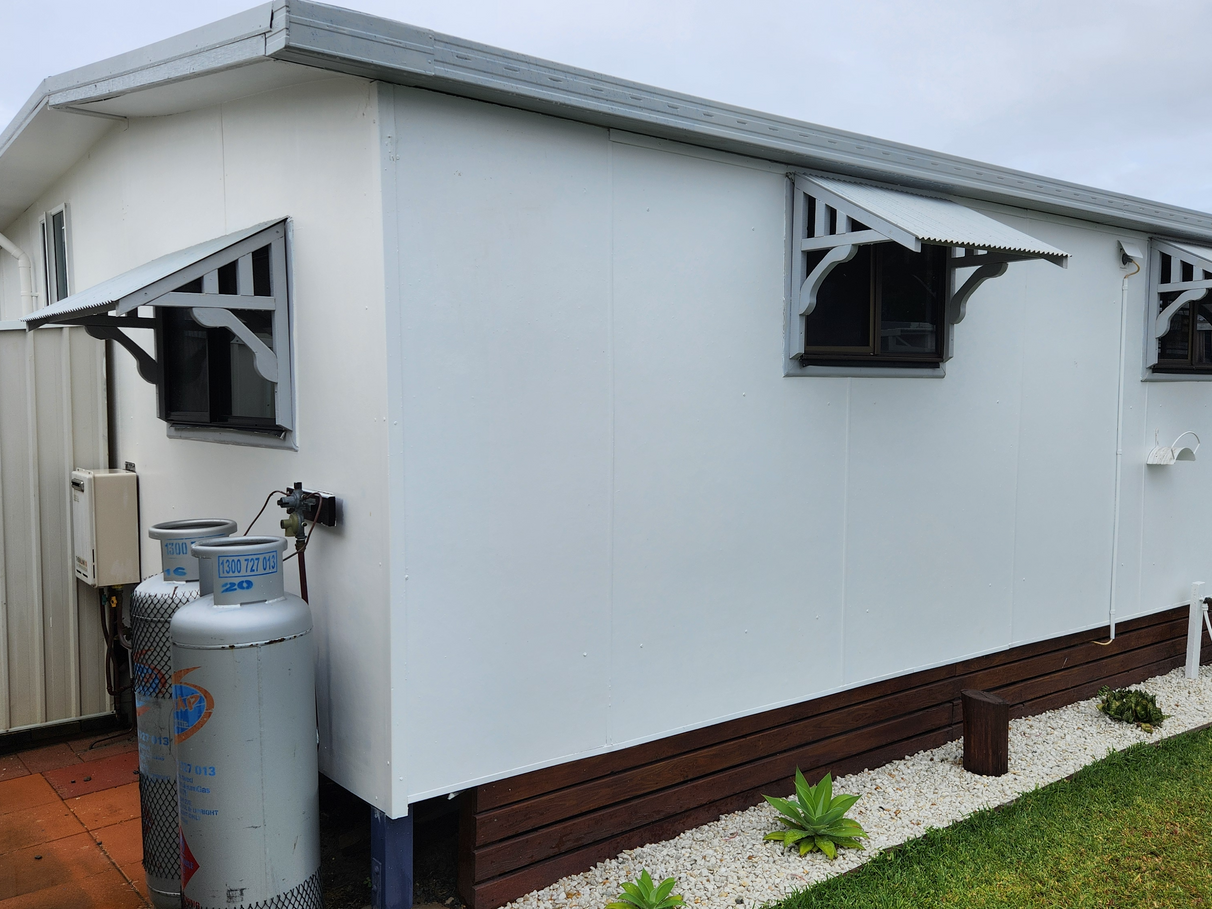 Delightfully stylish 2 bed home in Homestead Park Chinderah. Any age group may purchase in this park. The home is tastefully renovated with very low maintenance grounds. It is ideal for one or two people. Convenience features include: instant gas hot water; reverse cycle air conditioner; Homestead swimming pool close by. This home is in an excellent street surrounded by quiet helpful neighbours. There is green space next door which includes room to extend the verandah around the side of the house. Nothing to do, just move in. Site rent is currently $250 p.w. including water. You need to pay for your own electricity, but there are no other fees/rates/levies to pay. Pets are not allowed in the Homestead Park.