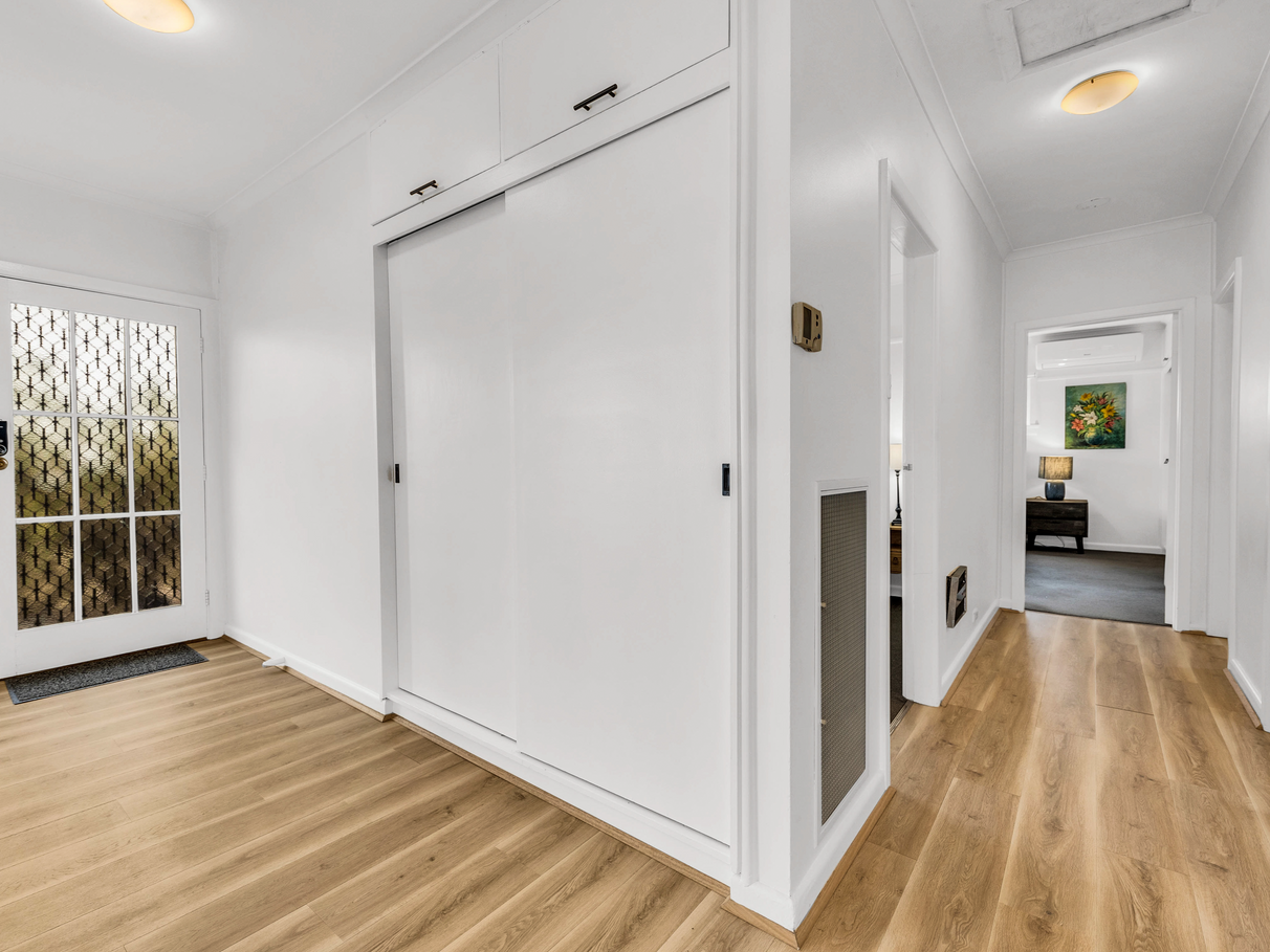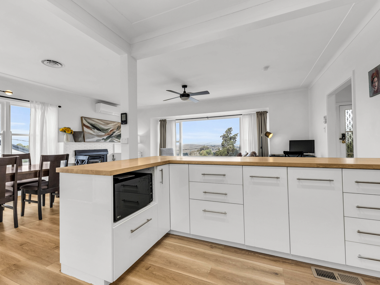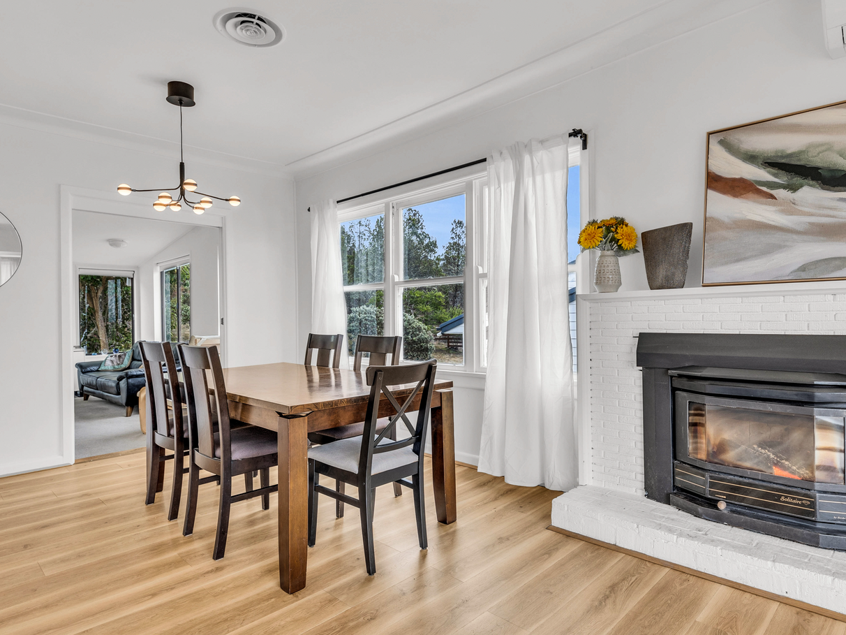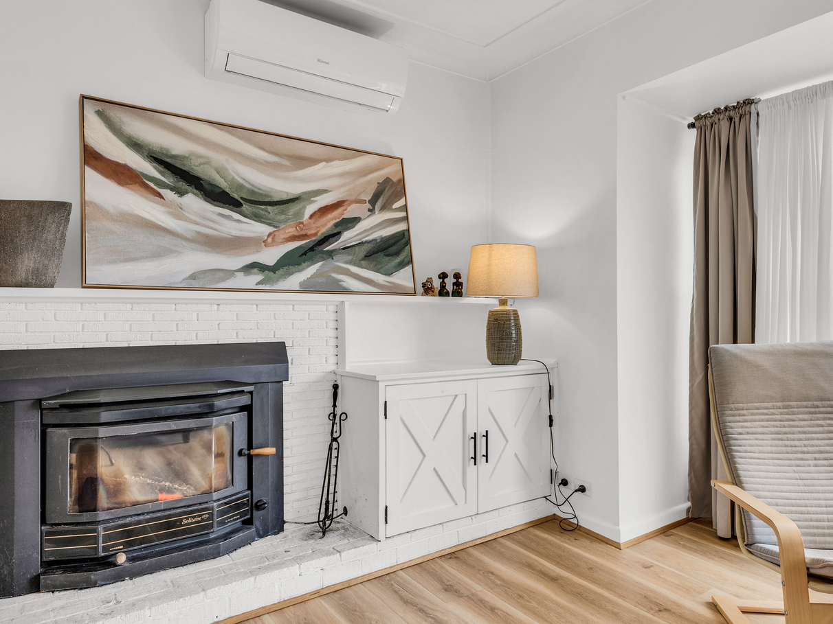 If you appreciate space and storage, this home ticks all the boxes – big bedrooms with high ceilings (2.6m) combined with floor to ceiling robes in all 3. Also, a huge laundry/combined mud room with more built-in cupboards and a benchtop incorporating the sink. Room for an extra fridge/ freezer even. The spaciousness extends to the oversize single garage plus carport with easy access and extra storage underneath the home. A 3m x 3m garden shed on a concrete slab with attached woodshed offers more storage options in the backyard. Also at the back is a large covered patio with power and water, perfect for the BBQ and outdoor setting and with an extendable clothesline. The property also has rear access with ample room for that boat, caravan or trailer. There is also a well-established garden front and back. Heating includes, wood fire, gas and reverse cycle air-conditioning.