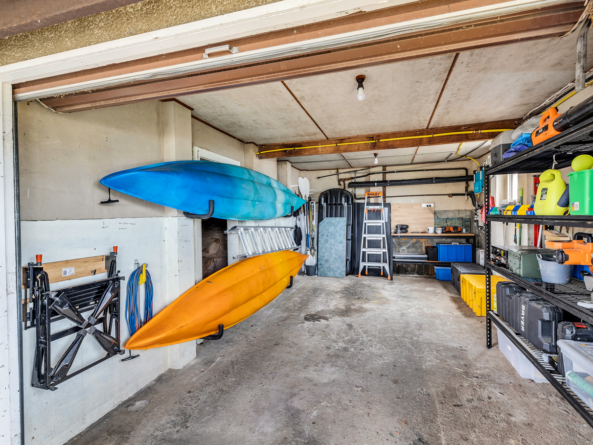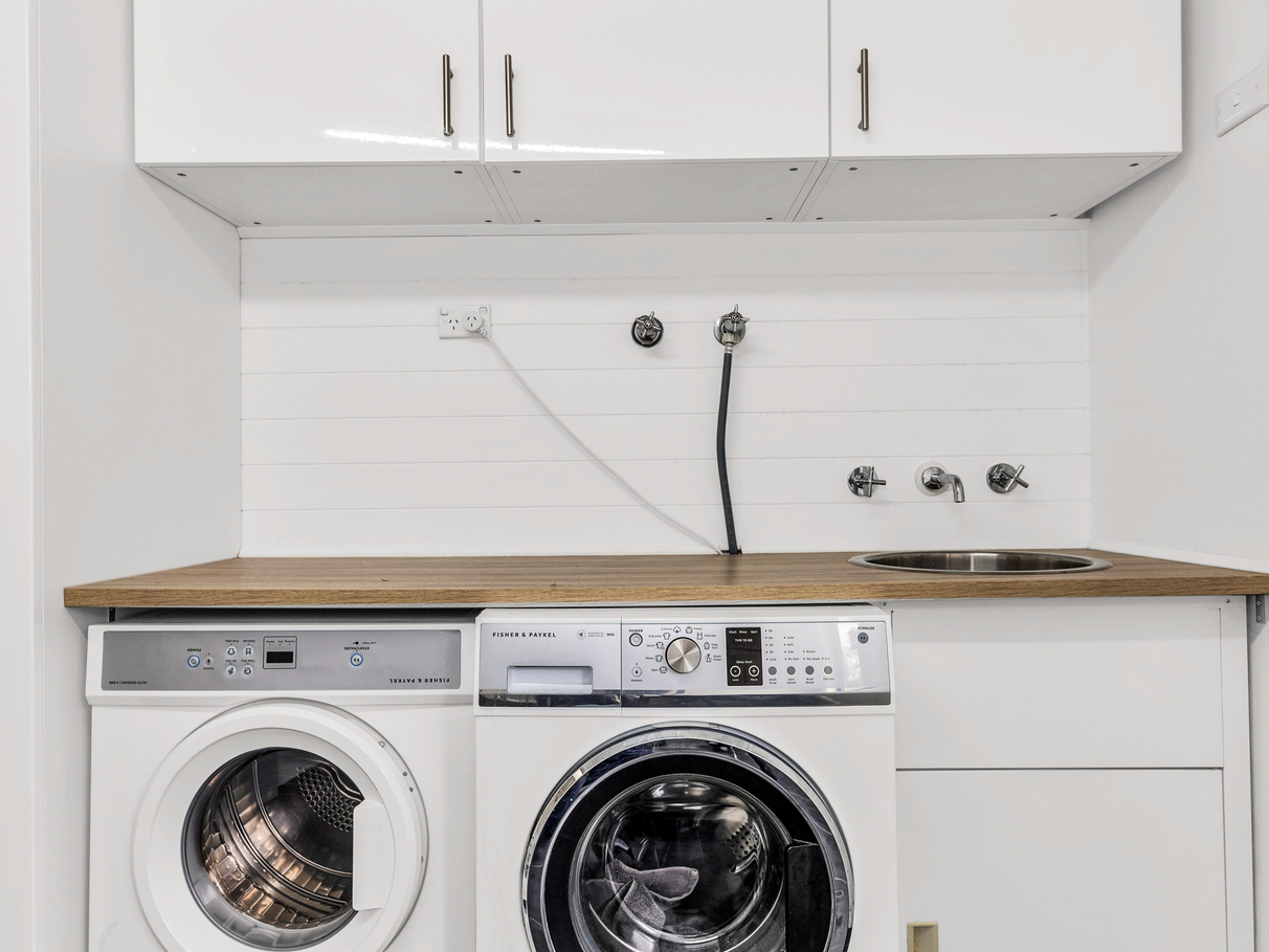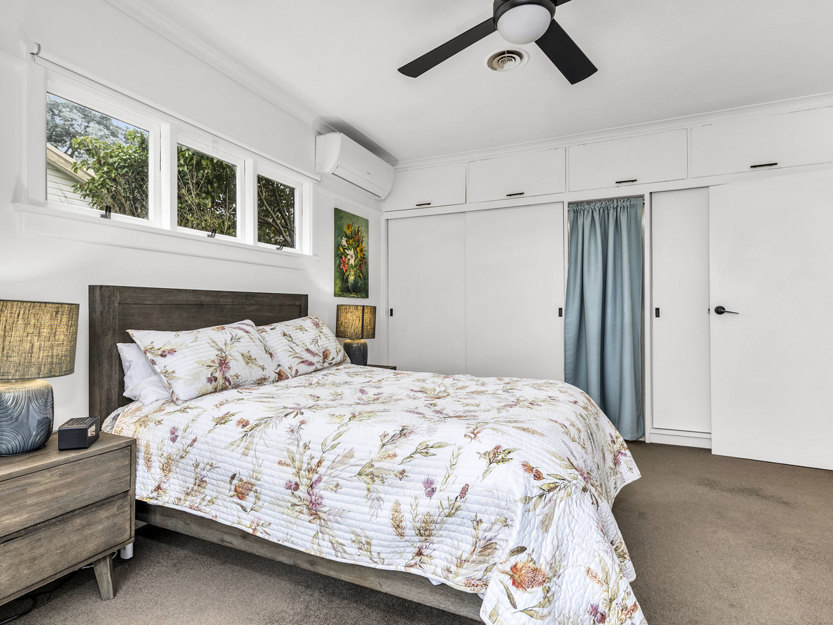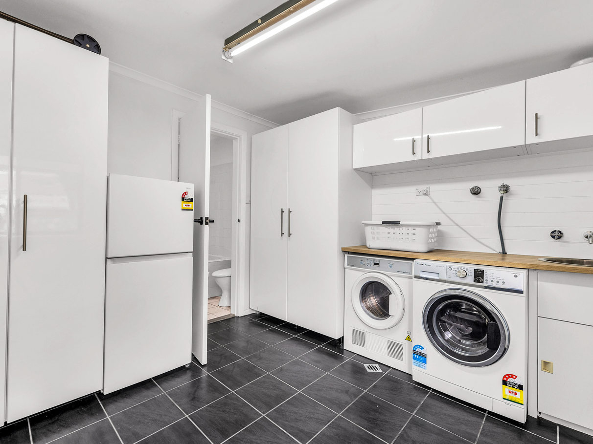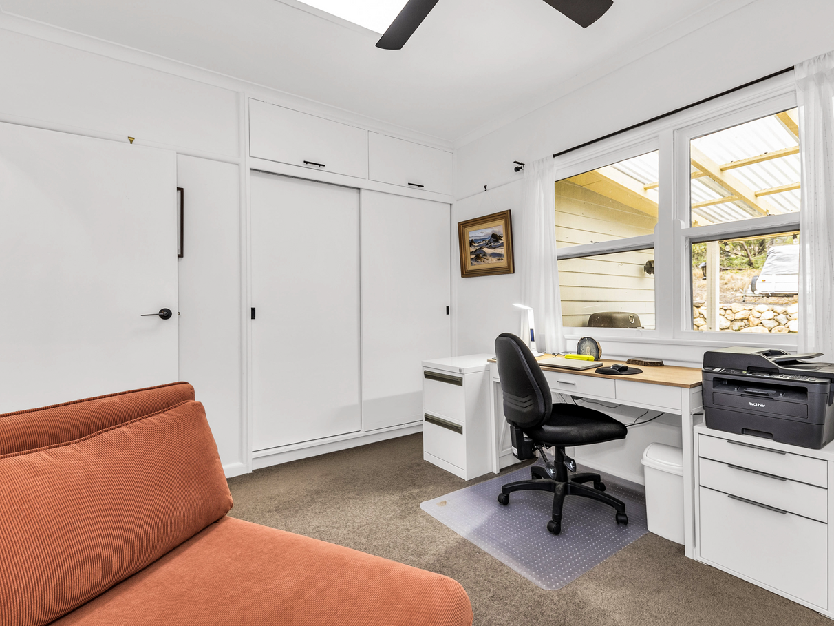 If you appreciate space and storage, this home ticks all the boxes – big bedrooms with high ceilings (2.6m) combined with floor to ceiling robes in all 3. Also, a huge laundry/combined mud room with more built-in cupboards and a benchtop incorporating the sink. Room for an extra fridge/ freezer even. The spaciousness extends to the oversize single garage plus carport with easy access and extra storage underneath the home. A 3m x 3m garden shed on a concrete slab with attached woodshed offers more storage options in the backyard. Also at the back is a large covered patio with power and water, perfect for the BBQ and outdoor setting and with an extendable clothesline. The property also has rear access with ample room for that boat, caravan or trailer. There is also a well-established garden front and back. Heating includes, wood fire, gas and reverse cycle air-conditioning.