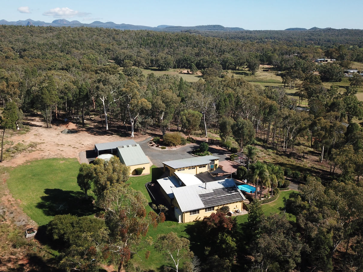 Set on just under 12 Acres of bushland the split level home consists of 4 bedrooms, 3 with large built-in wardrobes and the master bedroom consisting of a walk-in robe, ensuite and immediate access to the pool. It also includes 2 living areas a large kitchen with ample storage, dishwasher, electric oven and cook top all of which has been fully renovated