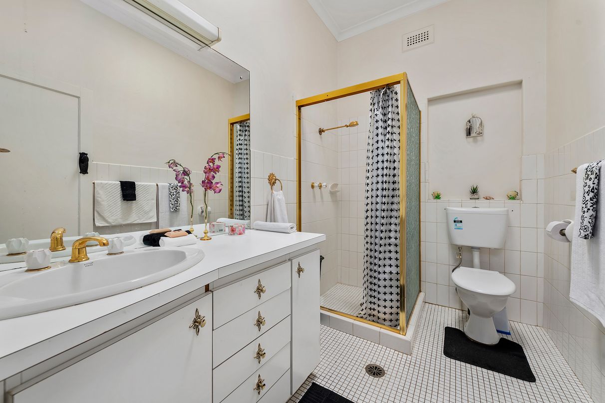 Combining the perfect mixture of timeless quality and modern elegance, this 1930 built two-bedroom home offers stylish renovated living retaining many beautiful Art Deco features. Boasting an immaculate street presence with landscaped gardens, awnings and a concrete driveway, the solid brick double fronted home showcases vinyl plank wooden floors, 10ft ceilings with decorative cornices, ceiling rose and period light fittings complemented by quality fixtures and fittings, a modern colour scheme, well thought out floor plan and superior entertaining spaces.