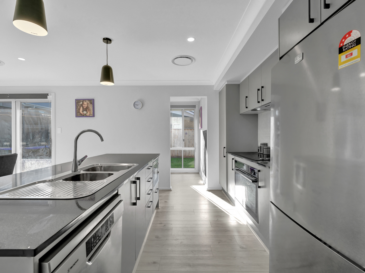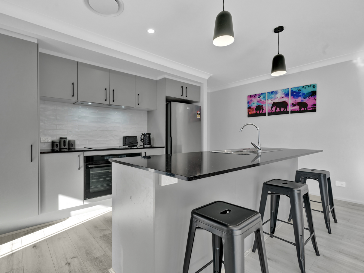 Kitchen is complete with a 900mm Euromaid Oven, Westinghouse Dishwasher, Stone bench tops & extra storage space.
