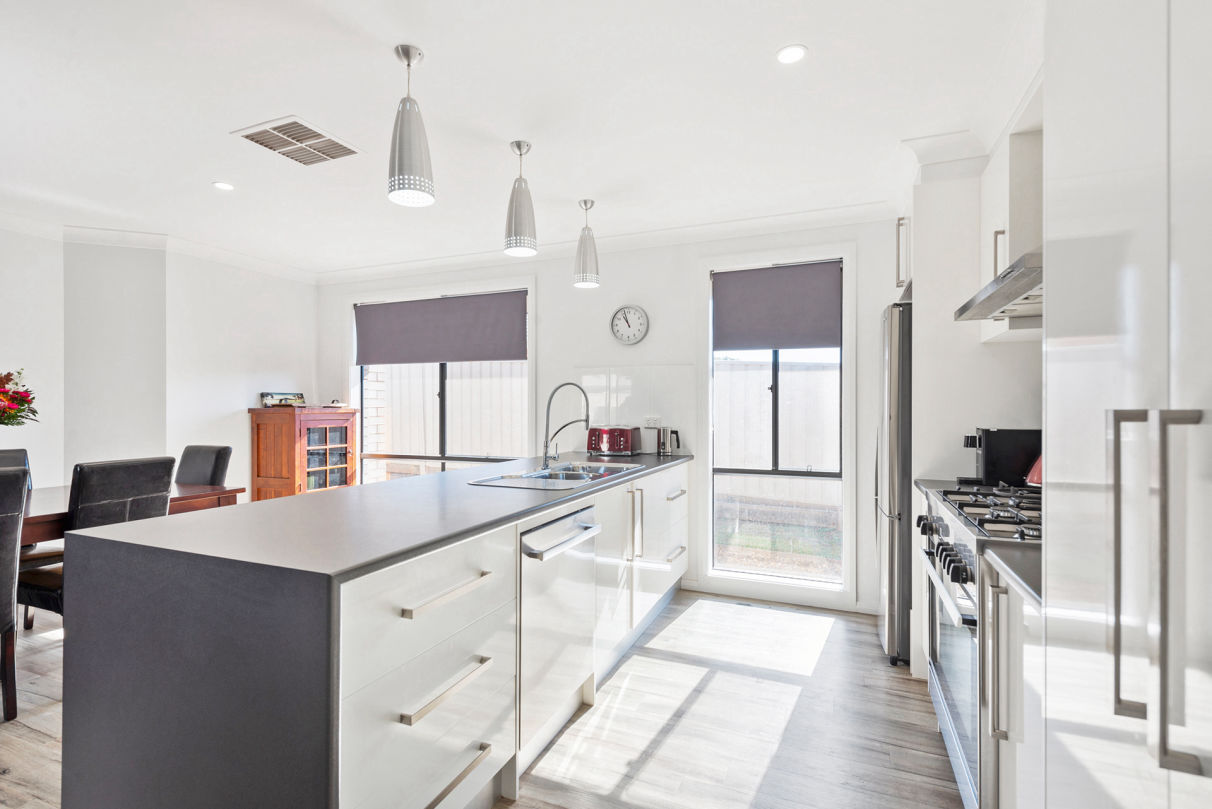 The home consists of 3 spacious bedrooms, two well-proportioned bathrooms including an ensuite, living area, open plan kitchen fitted with quality appliances, separate laundry, a double internal access garage and air conditioning throughout.