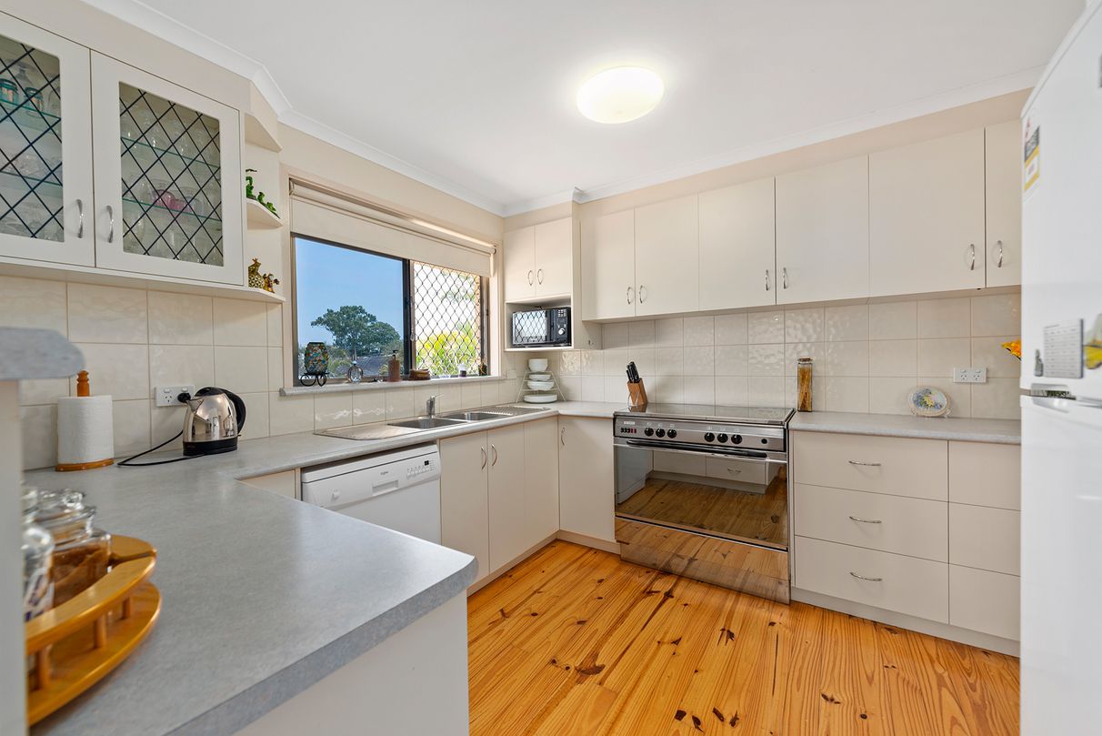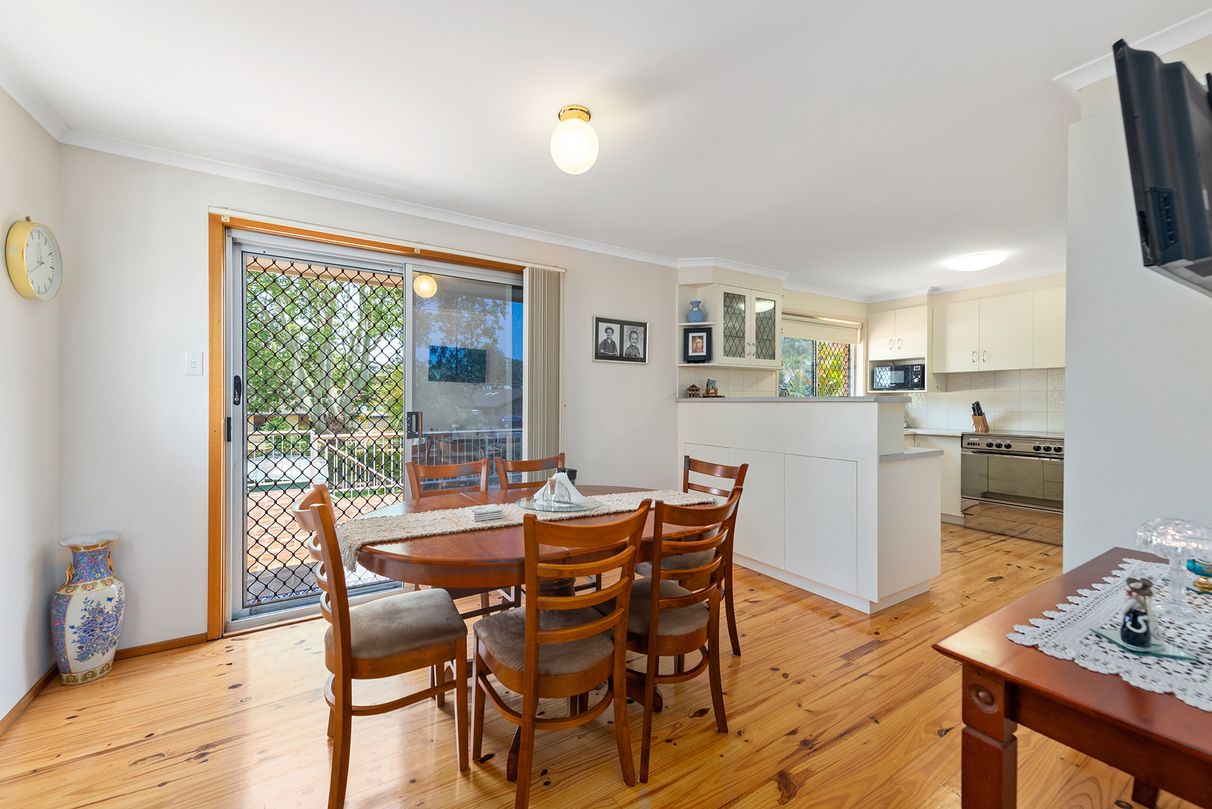 Presenting an impeccable standard of living for all, the home boasts an immaculate street presence with a neat lawn, simplistic gardens and room for multiple cars. Spread over two well-designed levels, every inch of this block has been utilised to perfection. The open floorplan flows effortlessly together yet with separation in between. Showcasing polished wooden floors and quality fixtures and fittings complemented by a modern colour scheme and large windows emphasising space and light throughout. The generous kitchen is located upstairs and flows through to the dining, lounge and out to the rear sun deck which is the perfect place to entertain guests overlooking the lush gardens and greenery below. The sunroom, front verandah and back BBQ area create plenty of spaces for everyone to relax with ease.