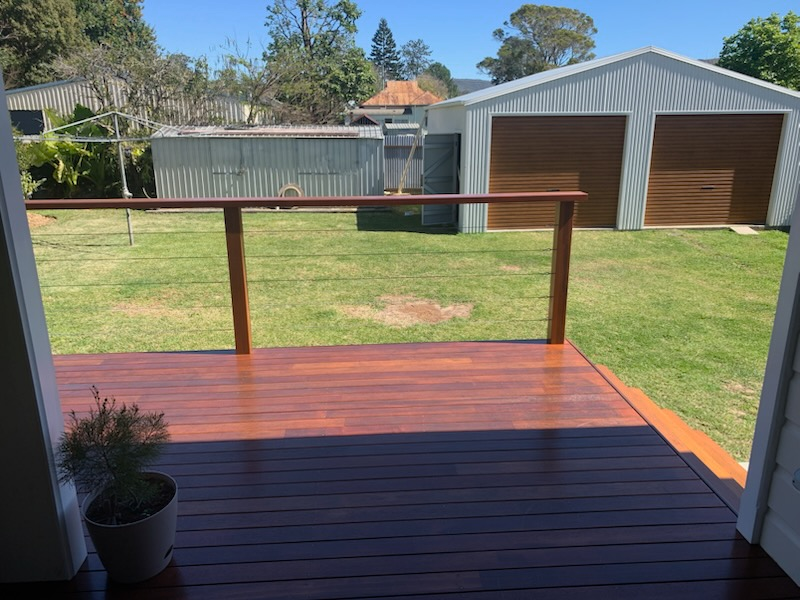 New external hardwood weatherboard cladding;