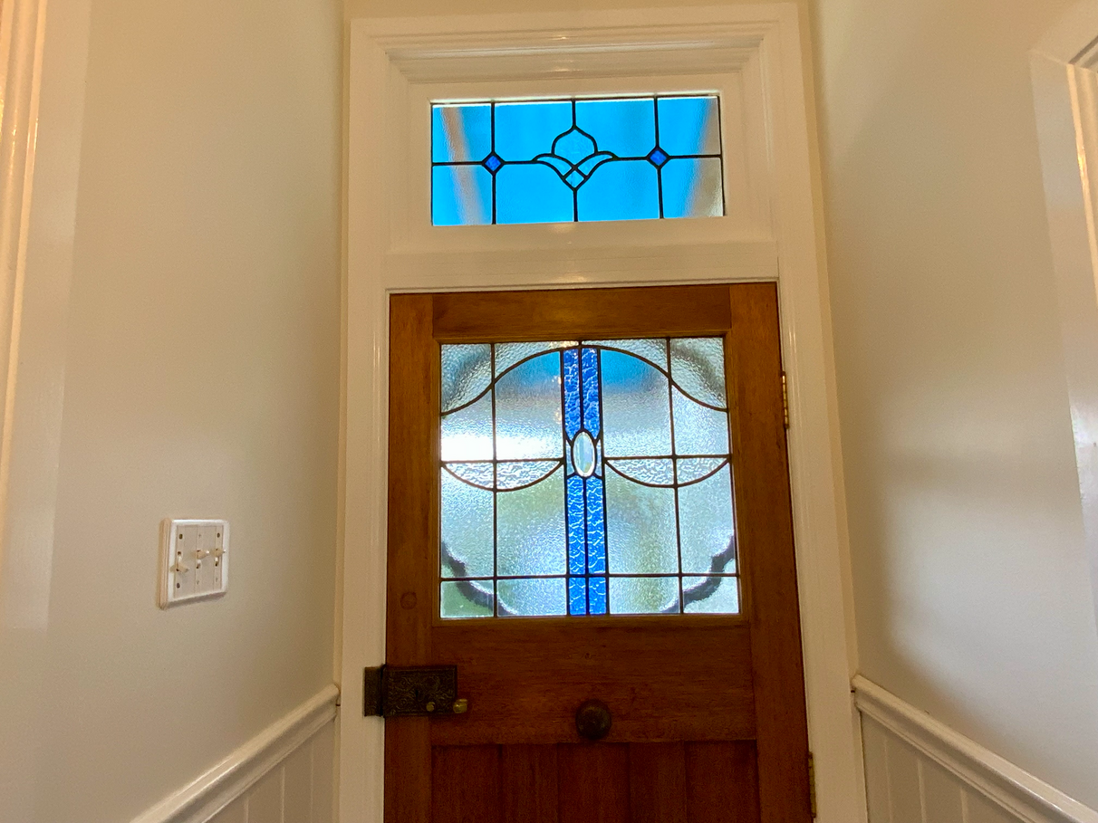 Period features throughout, including Australian red mahogany flooring, restored coloured glass windows, antique doors and hardware, stained glass feature windows and 9ft 6' ceilings.