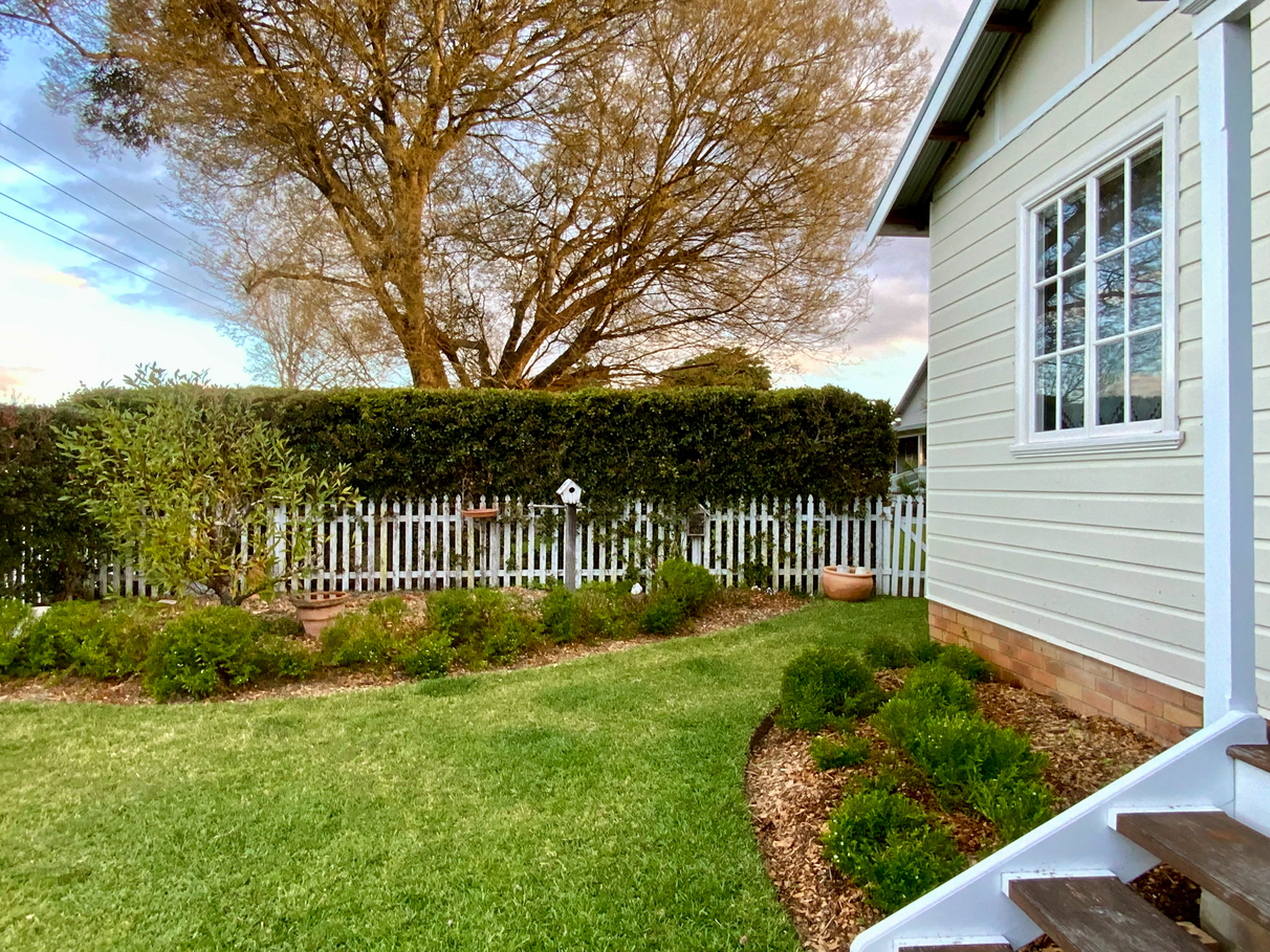 765m2 flood-free block, offering established gardens, including mature hedges for privacy, fruit trees and flowering natives. The yard is fully fenced, with a charming hardwood white picket-fence at the front, and laneway access at the rear.