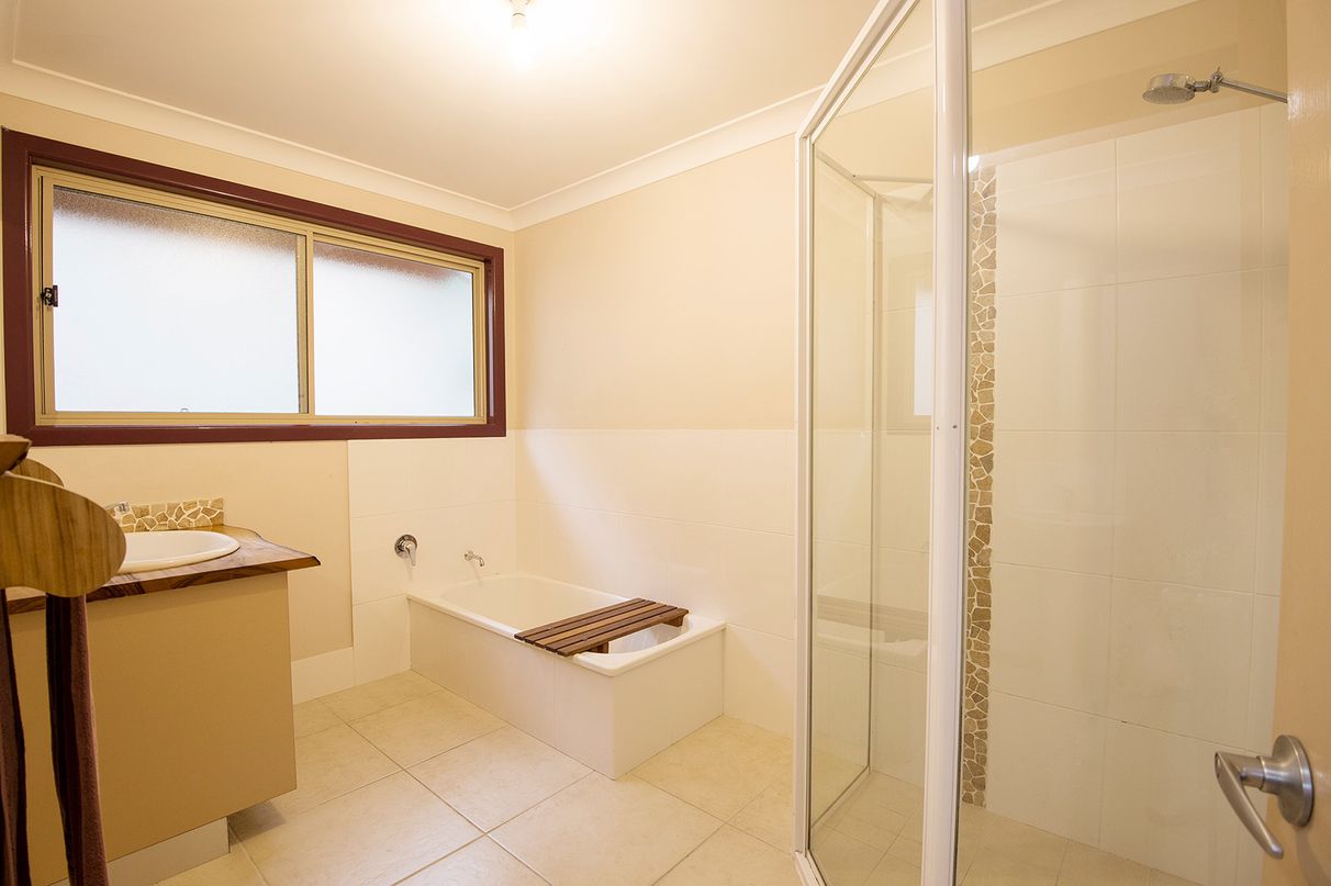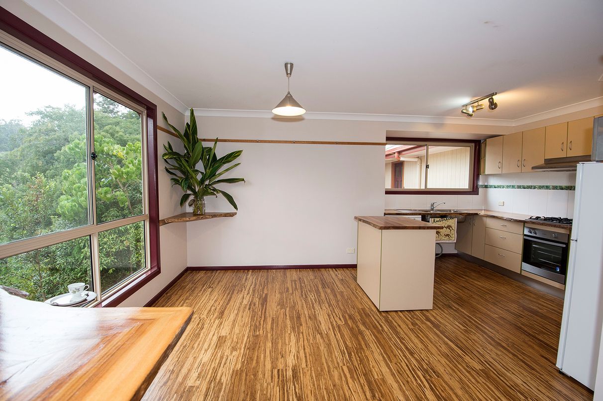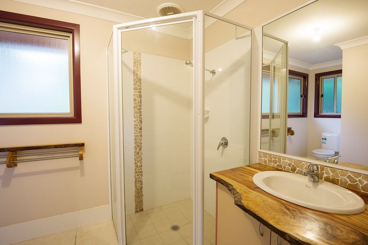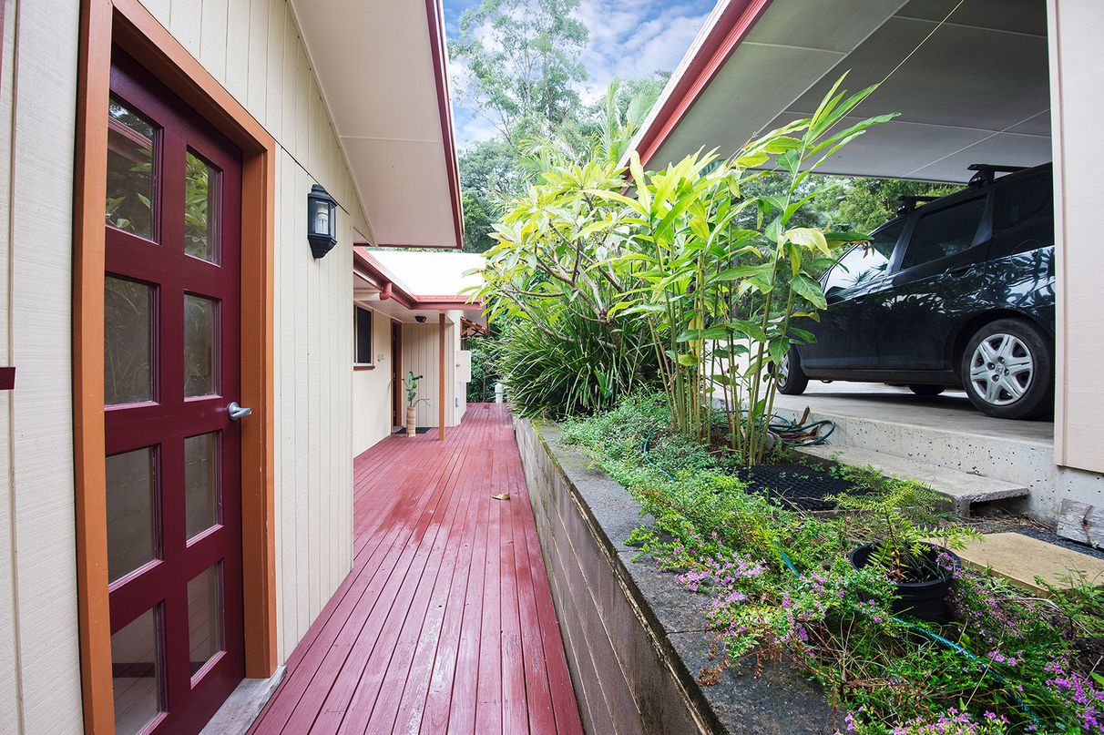 Designed by the owner and built by an established local builder only nine years ago, this home has modern finishes and creative features that make it stand out. Quality bamboo floorboards underfoot, and natural edge camphor laurel slab benchtops, rails and other fittings feature throughout.