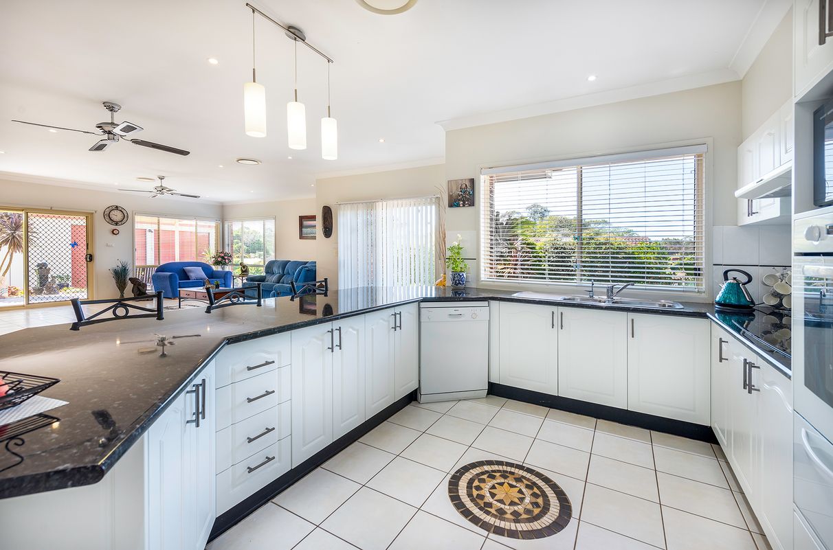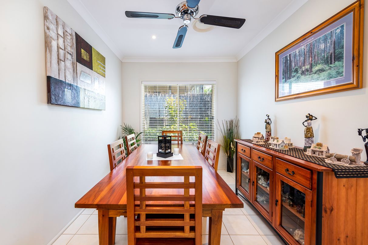 The modern kitchen has a generous sized bench creating ample space for the whole family to utilise, which doubles as a breakfast bar. It comes equipped with a dishwasher, plenty of cupboards, and receives fantastic natural light. Opening onto a generous lounge room, with tiles throughout, it is a great communal space to be enjoyed. Plus, there is also a separate lounge, and separate dining room. Glass sliding doors open from the lounge room out onto the fantastic undercover alfresco dining area, the perfect place to entertain guests or enjoy some quality family time. Manicured gardens and a sizable level lawn cover the backyard creating space for the children to play.