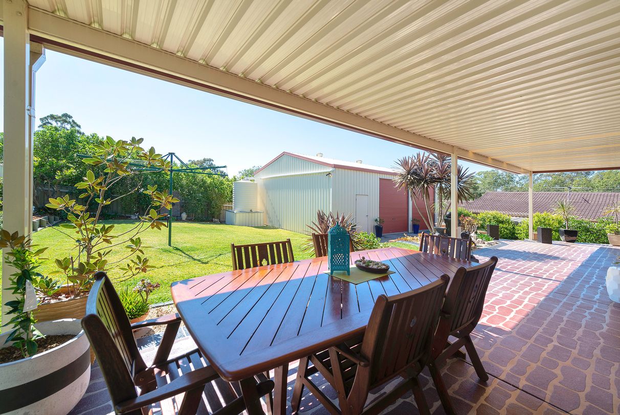 The large shed can fit up to 2 cars, or be used as storage unit for the boat or caravan, and inside is a mezzanine level and lock up room that can be used as a home office. The rain tank and hot water solar panels are a great plus, making the property economical and environmentally friendly.