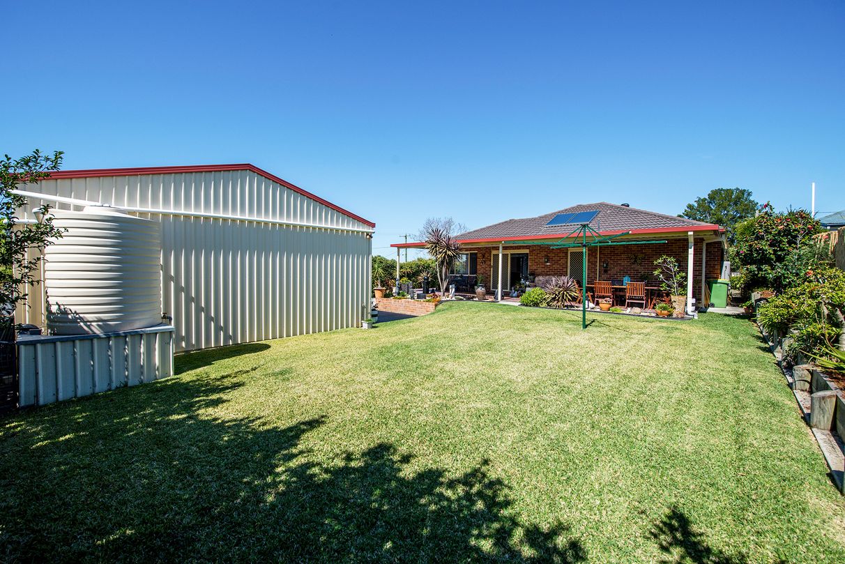 On a large block this property offers a double garage, with remote, an enormous shed with double entry, And plenty of Off street parking. hot water solar panels and a water tank great for the gardens.