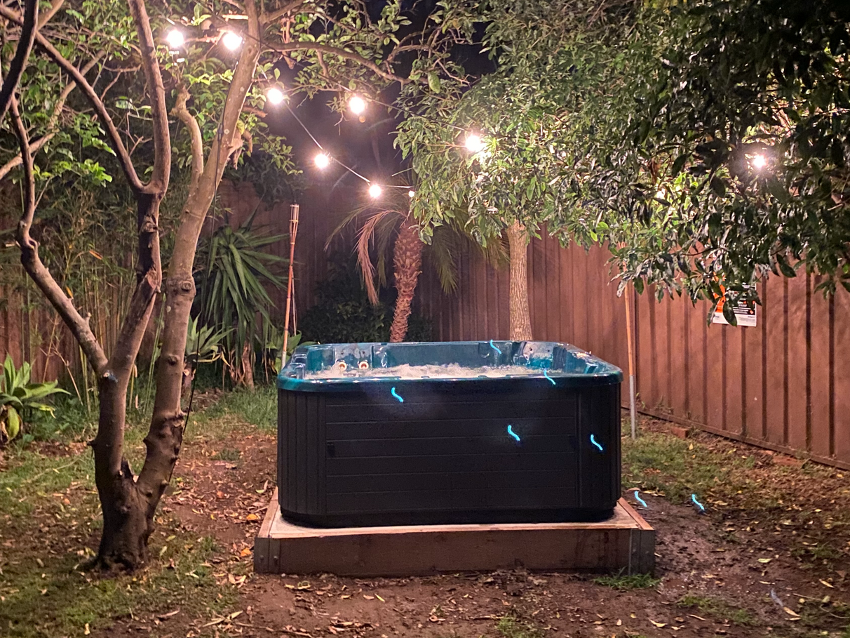 - Hot Tub above ground, with outdoor electricity for music and lights