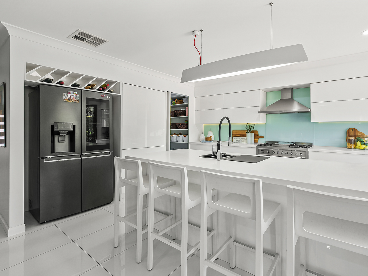 At its heart, a stunning kitchen with premium finishes and a walk in pantry overlooks the pool, creating a true focal point for everyday living. Expansive bi fold doors open to a decked alfresco and private backyard oasis, complete with a pool, fire pit, and multiple zones to relax and entertain.