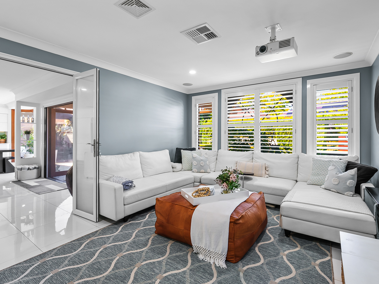 Additional features include a private theatre room, upstairs rumpus, ducted air conditioning, and a double garage with dual driveways. Positioned on a generous north facing block in a quiet, tree lined street, moments from local schools and amenities.