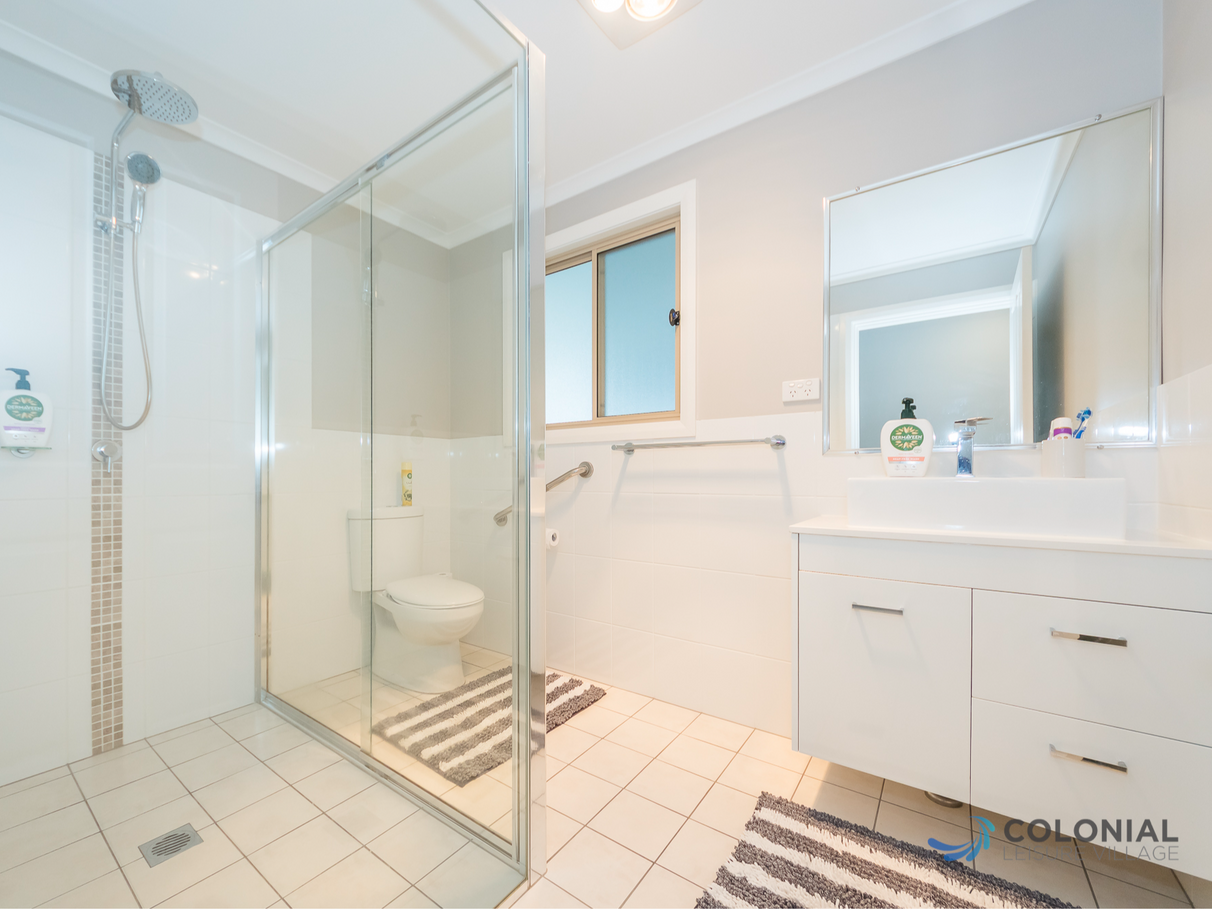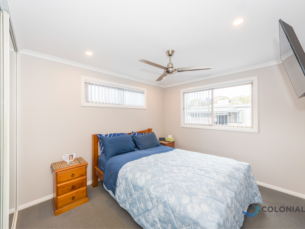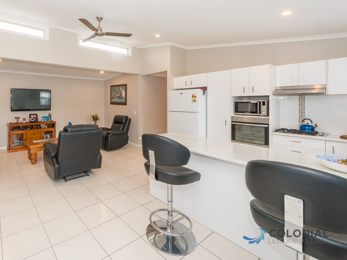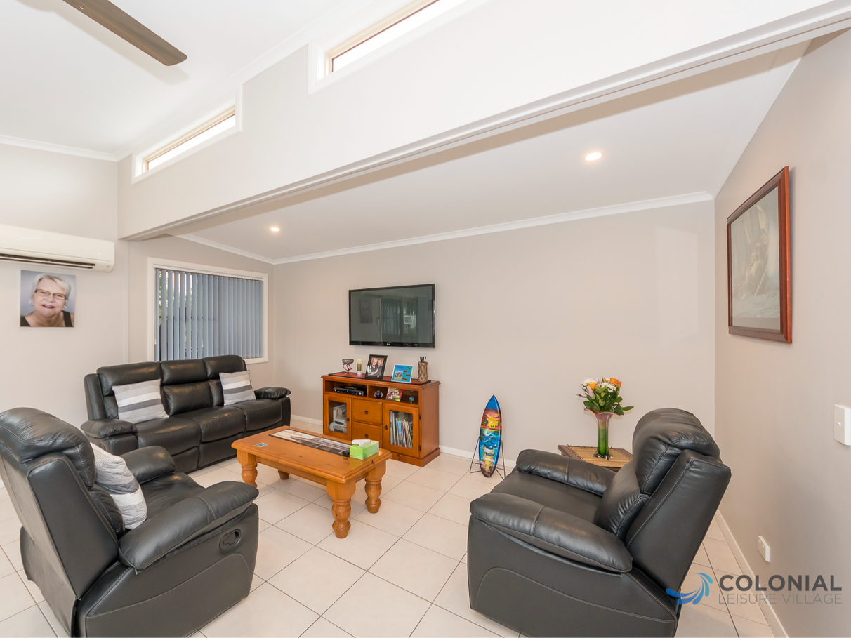 This immaculately presented relocatable home, designed and built by Uni-Plan in 2016, offers comfortable and low-maintenance living within the welcoming over-55s community of Colonial Leisure Village in Harrington. With two generous bedrooms, both featuring built-in robes and ceiling fans, the home is thoughtfully designed for relaxed, easy living in a peaceful village setting.