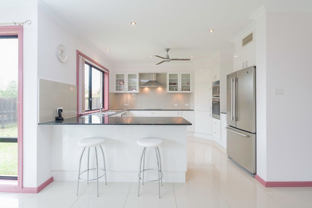 Downstairs living encompasses a formal dining or sitting room, plus the perfect base for everyday enjoyment - as well as celebrating and entertaining on any sized scale - open plan dining, living and gourmet kitchen with granite benchtops, plenty of under-bench and overhead cabinetry with jewel handle fittings, European appliances, dishwasher, large fridge cavity and pantry, all overlooking the neat gardens from the bay window and opening to the outdoors through double glass sliders.