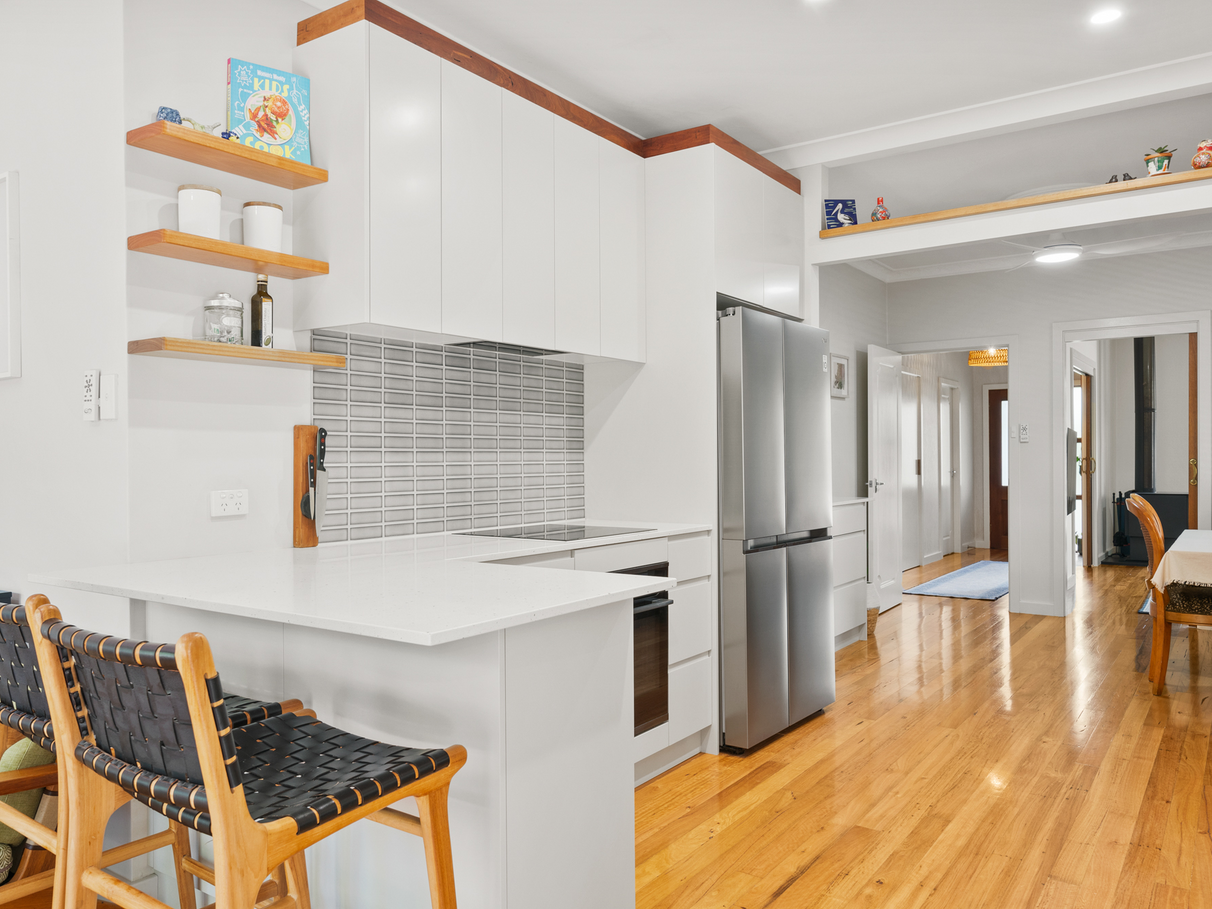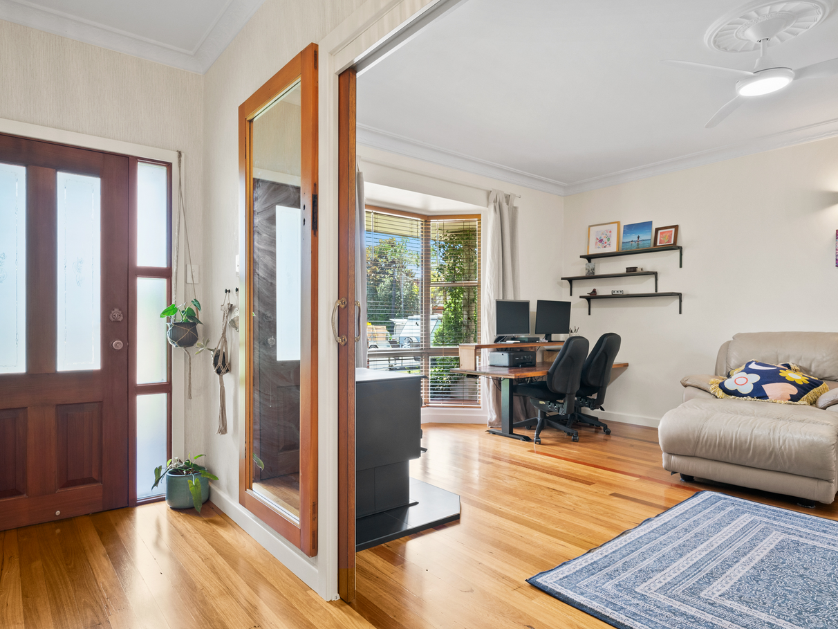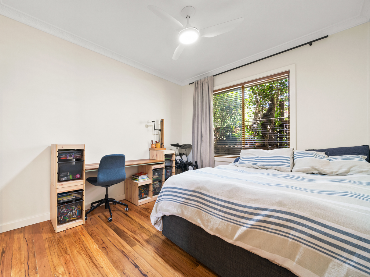 - Fully fenced private yard with rear lane access, fruit trees, vegetable bed, and decks.