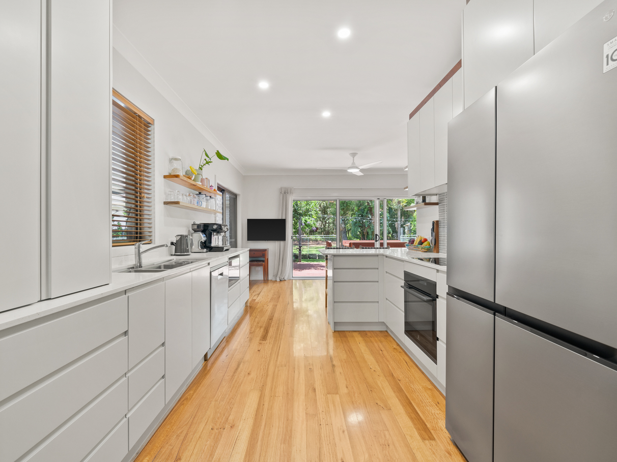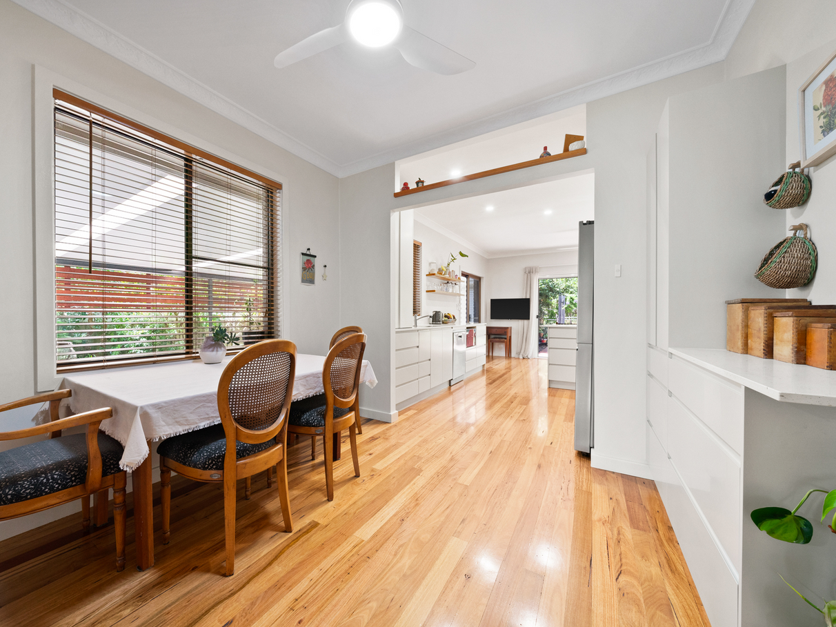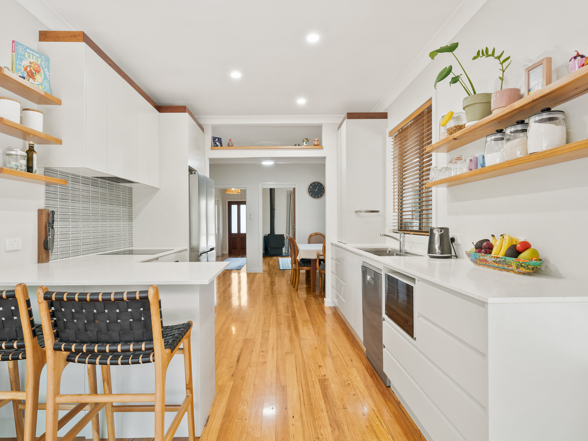 - Fully fenced private yard with rear lane access, fruit trees, vegetable bed, and decks.