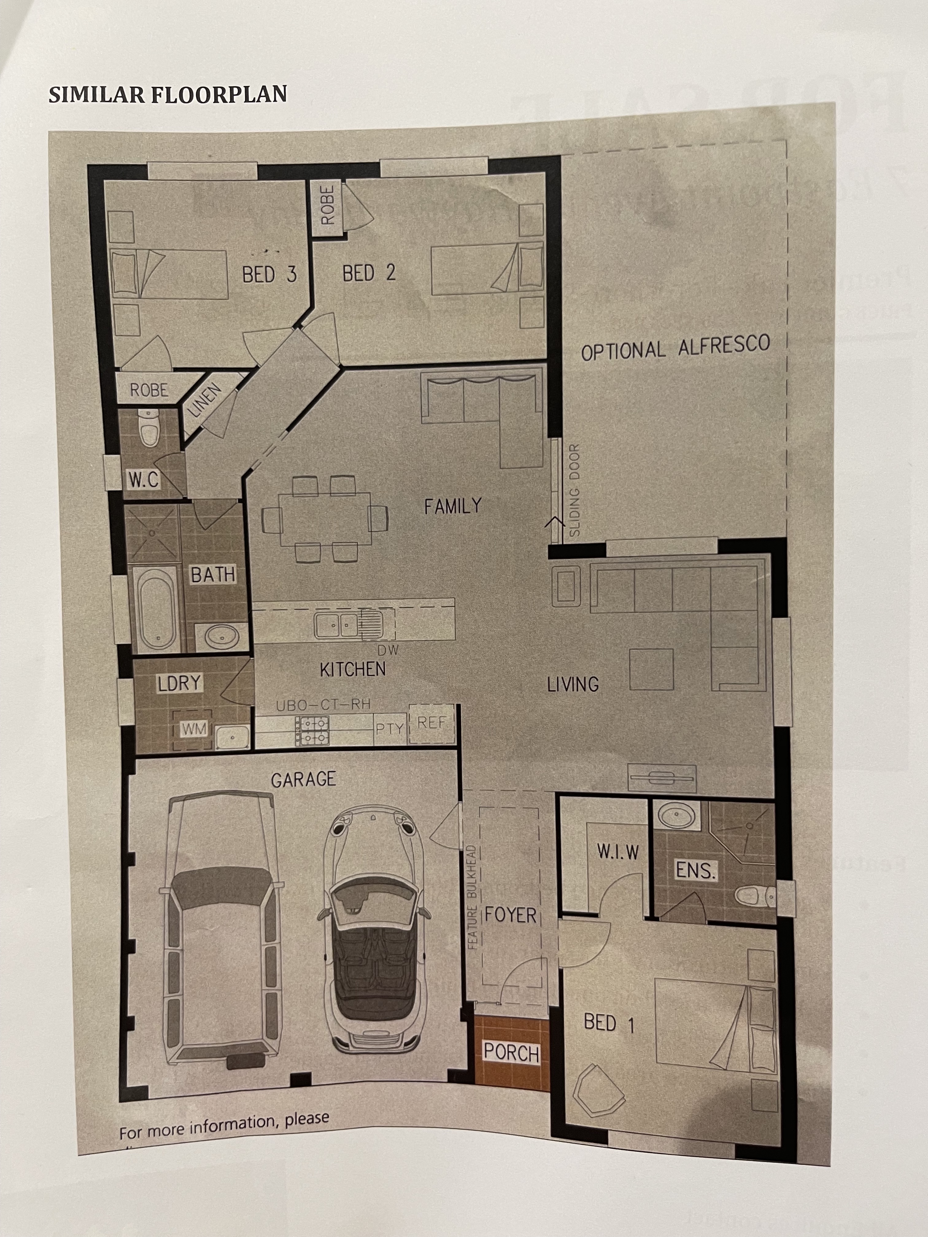 The practical floorplan offers functional living with 3 good sized bedrooms ,central foyer, open design living ,kitchen, family, ensuite, family bathroom , separate WC, laundry ,double garage with internal access and private alfresco setting leading onto spacious rear garden.