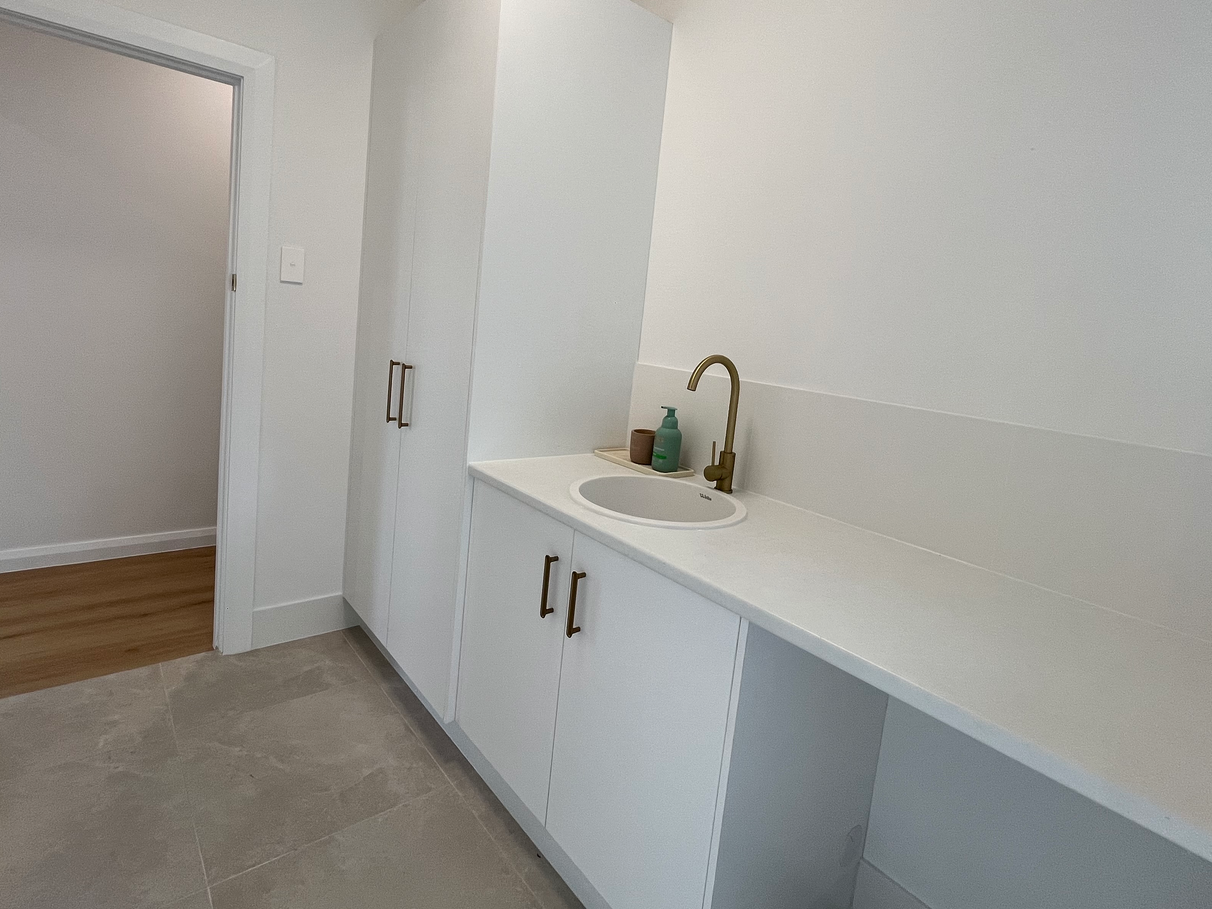 The light-filled open plan living, dining, and kitchen area has been designed for modern living, with quality appliances including a dishwasher, gas cook top and electric oven, while the spacious lounge is enhanced by a striking open fireplace and air conditioning to ensure year-round comfort. Each of the four bedrooms features built-in robes and ceiling fans, combining style with practicality, while the bathrooms have been finished to a high standard that complements the home’s fresh and sophisticated appeal.