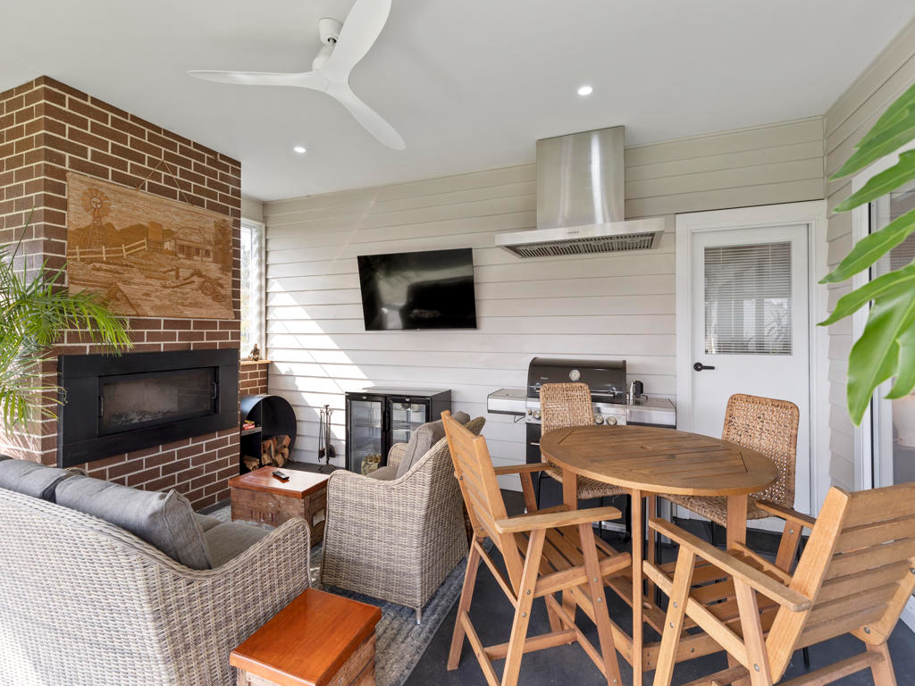 Go thru the rear sliding door to the Large, fully screened ( retractable ) - Alfresco area, with an open Fire Place. Snuggle up next to the open Fire, with a good book or enjoy a few drinks, watching your favourite TV show.