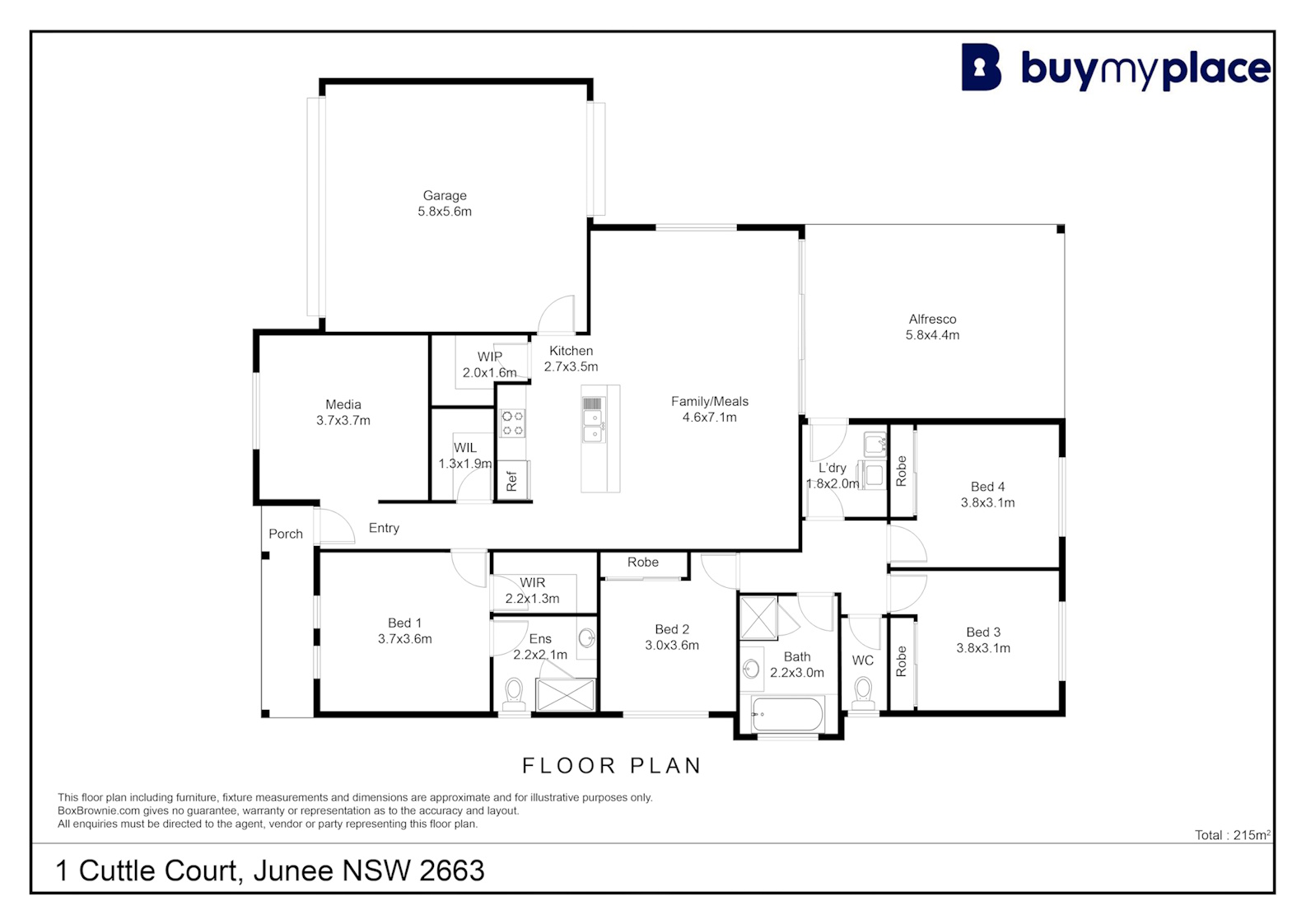 The home totals - 215M2, including the Dble Garage & Alfresco area.