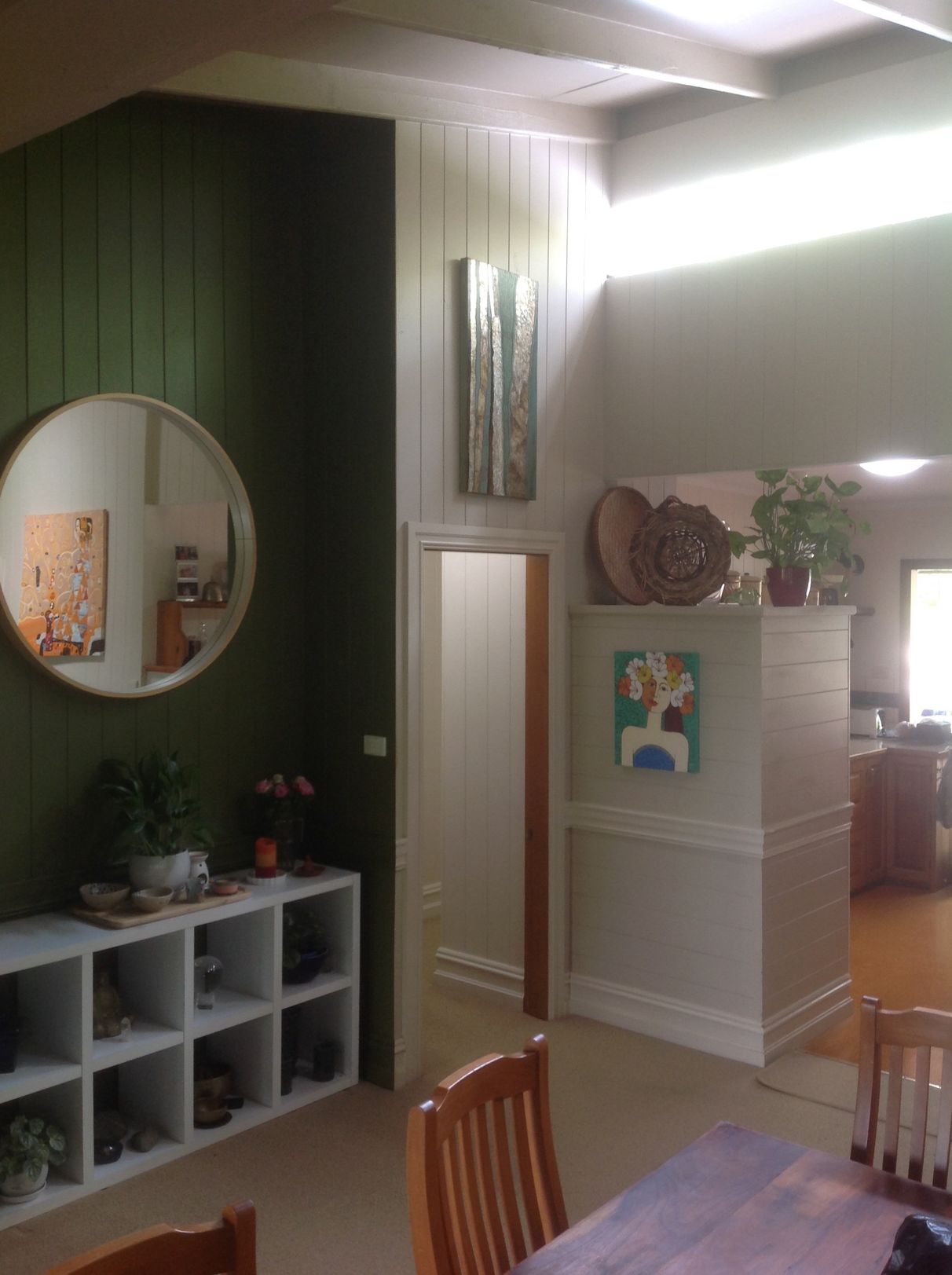 Double front doors with lead-light inserts lead through to the generous lounge featuring high raked ceilings with exposed beams and slow combustion fire.