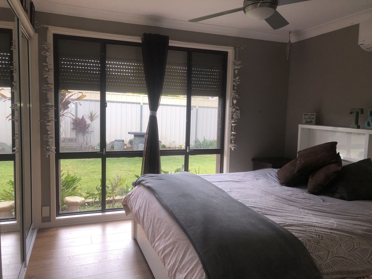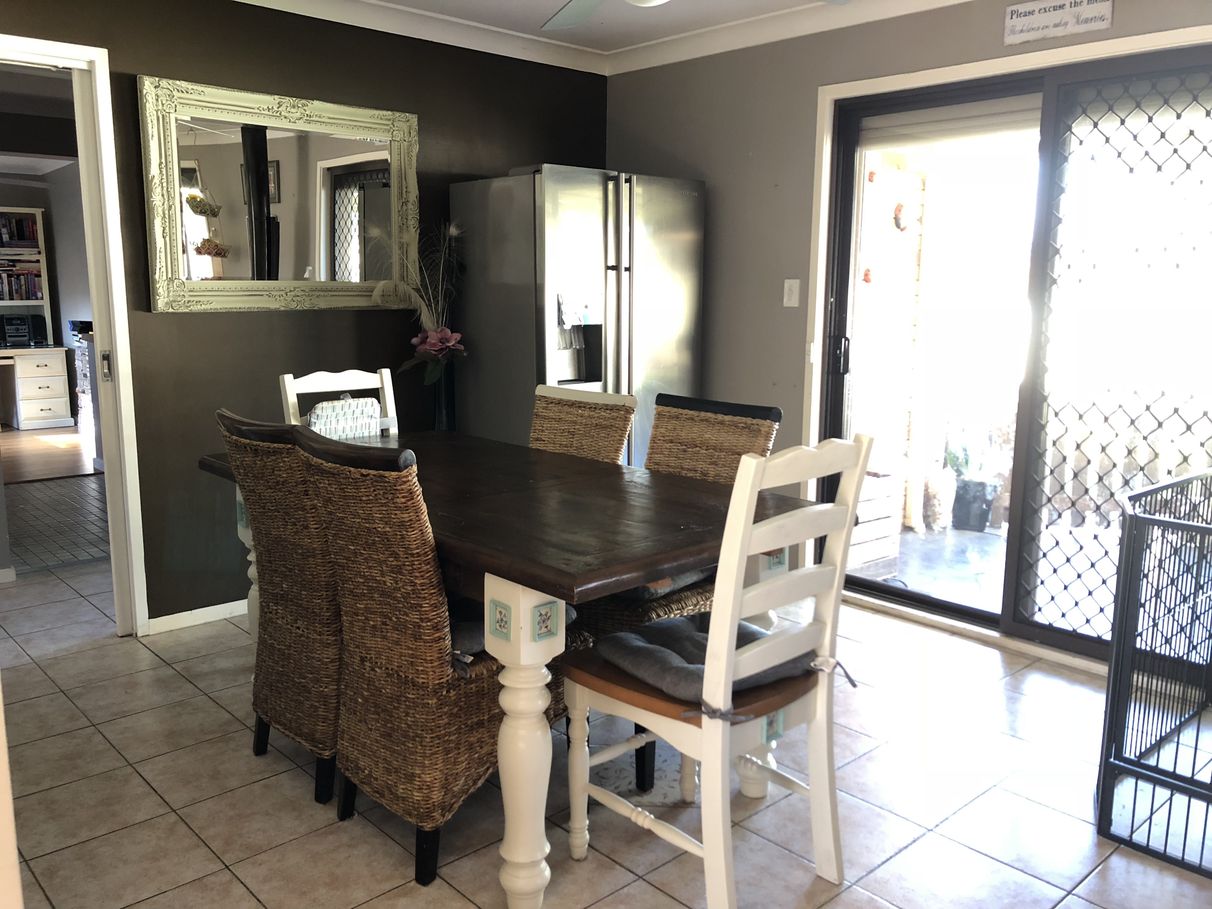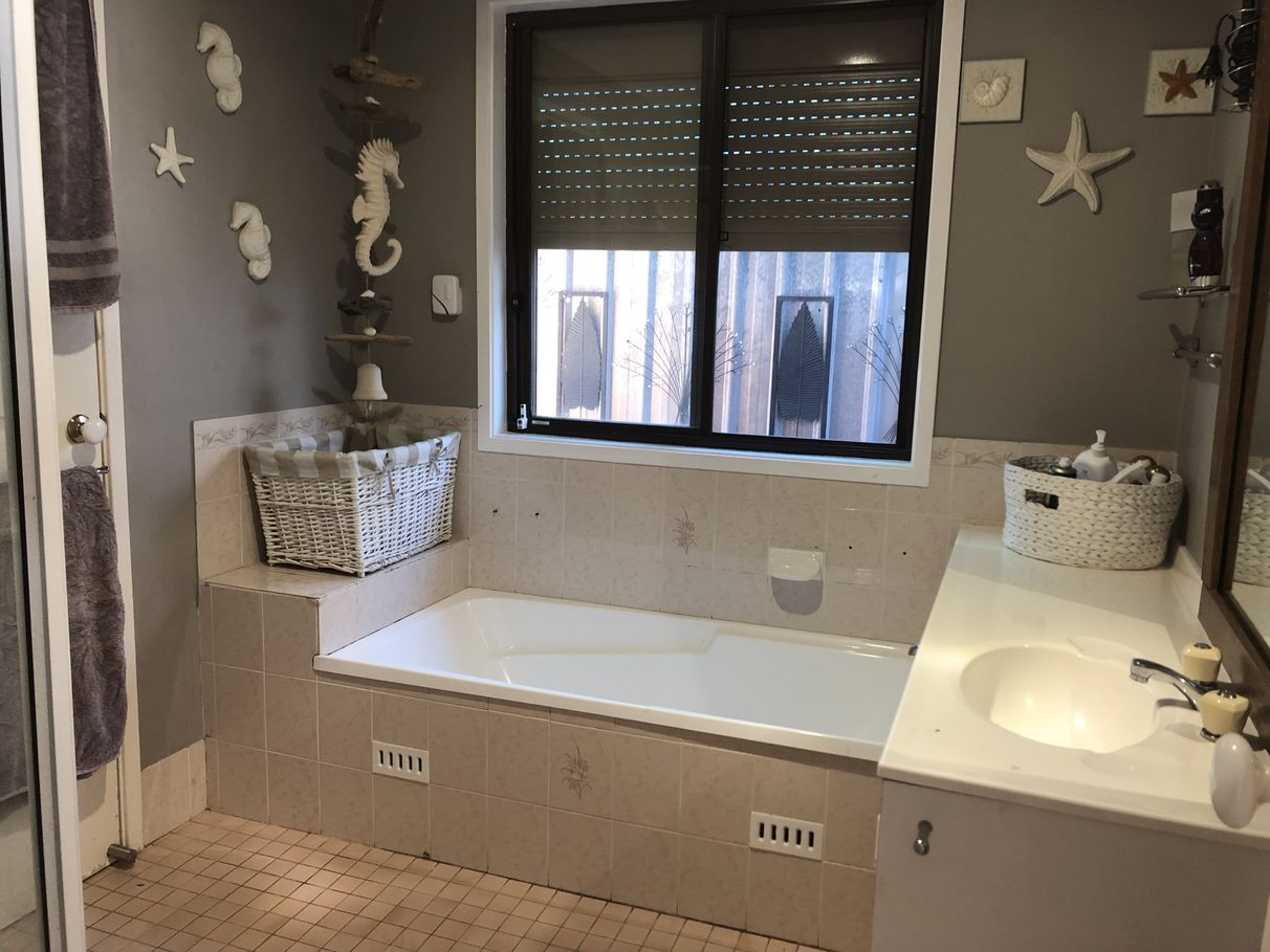 Inside we present with four bedrooms all with mirrored built ins, floating floor boards, fans. Also in the main bedroom there is ensuite access to the bathroom and we installed a Kelvinator split system air conditioner a year ago.