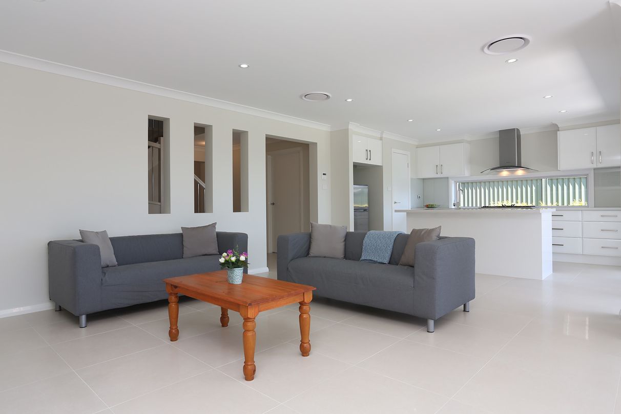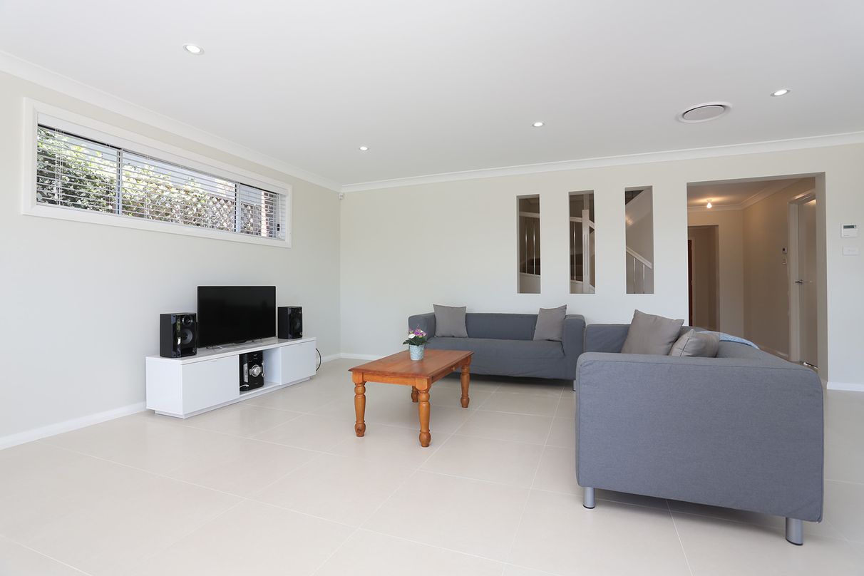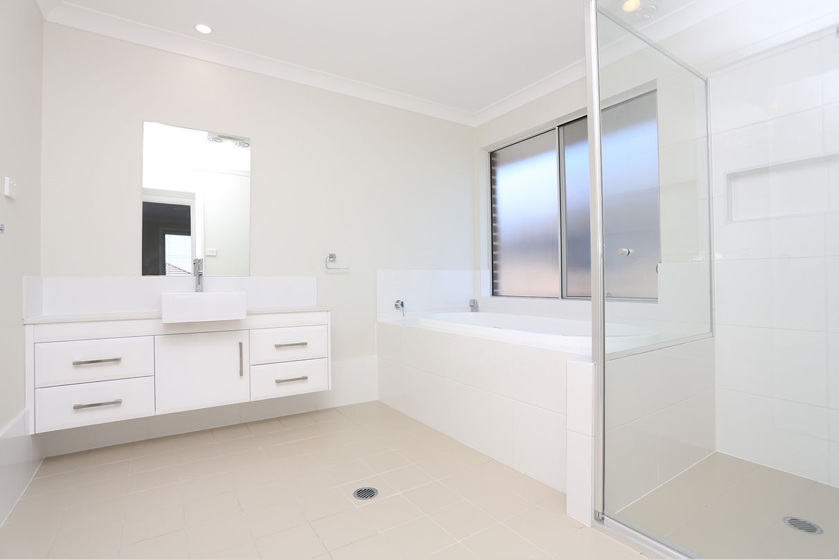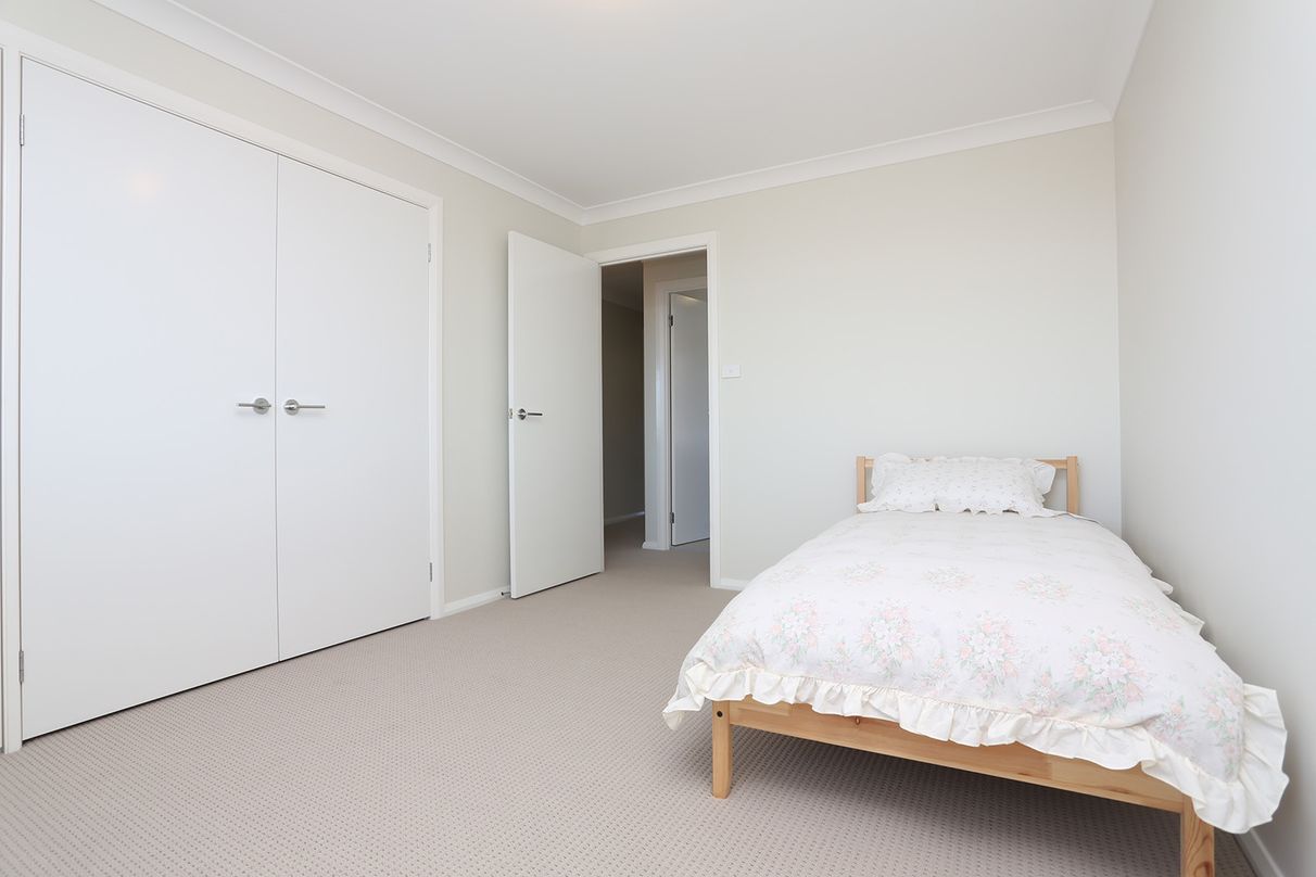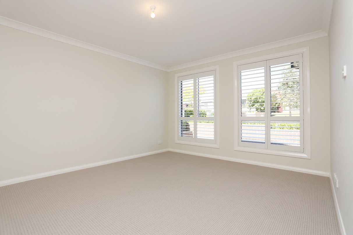 It has 4 large bedrooms, each with 4 power points and acoustic glass windows. The master bedroom has a walk-in-robe and en suite with a double sink vanity. The Master bedroom also has antenna and data points. All other bedrooms have large build-in-robes.