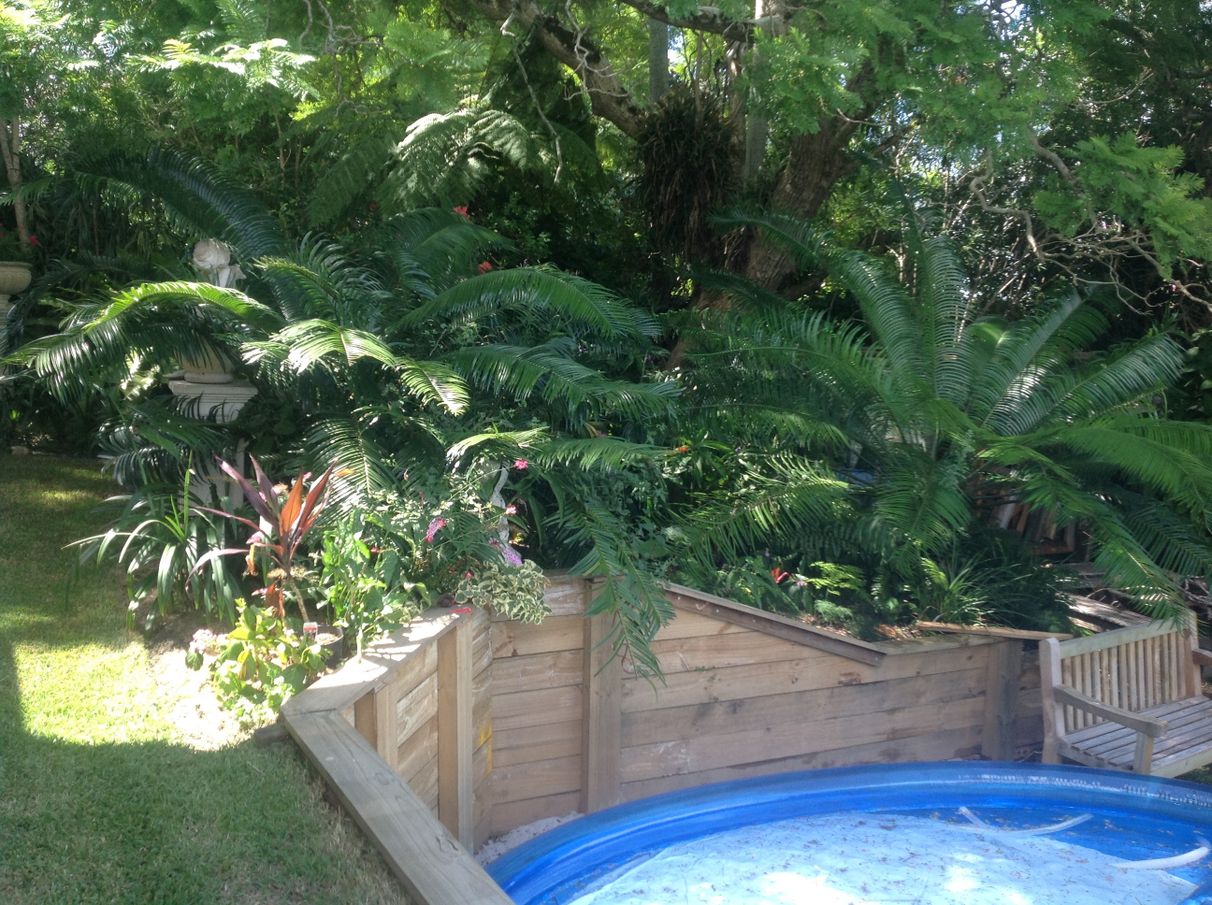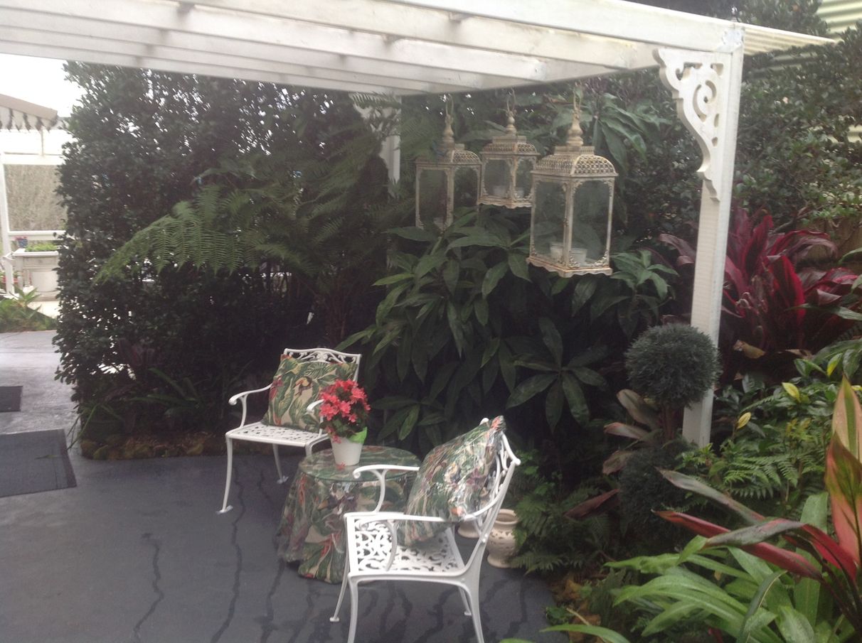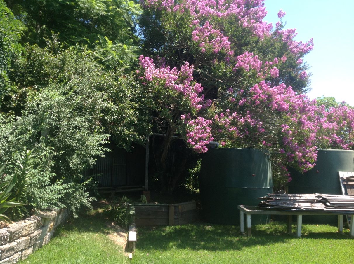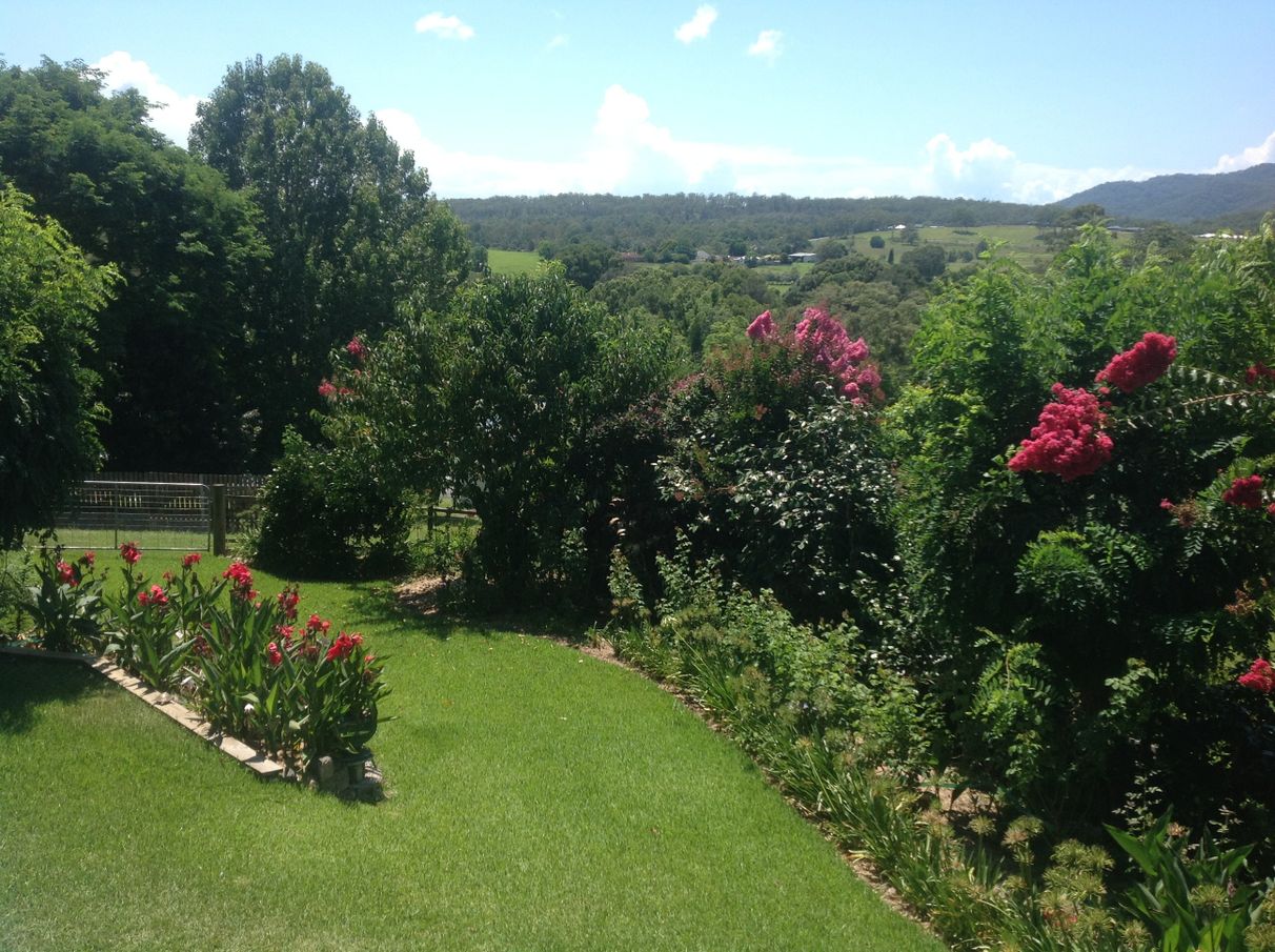 Impressive gardens: unique plantings of cycads and tree ferns, beautiful 60 year old blue jacaranda, established crepe myrtle, camellia trees and fruit trees.