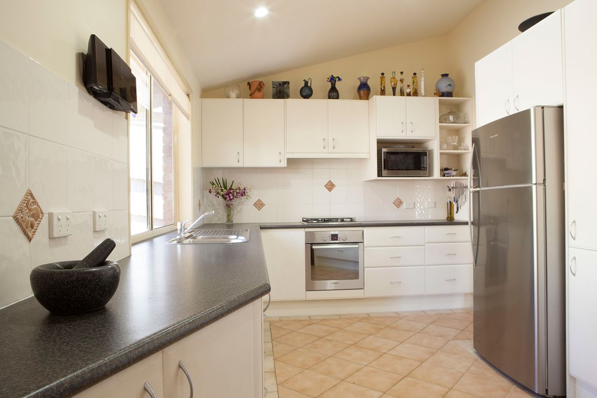 Contemporary kitchen adjoined with dining and sunken living zone opening to the elevated undercover decking with endless scope for entertaining guests. Out the back, an easy-care, undercover paved courtyard overlooking the tropical pool with shade sails.