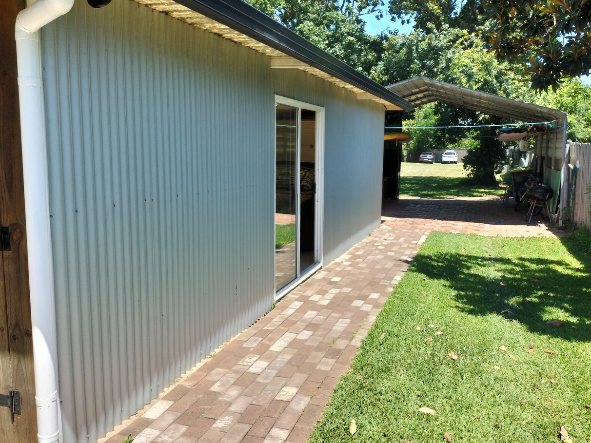Pergola at rear of house. Entertaining area also used as under cover parking for 3 cars