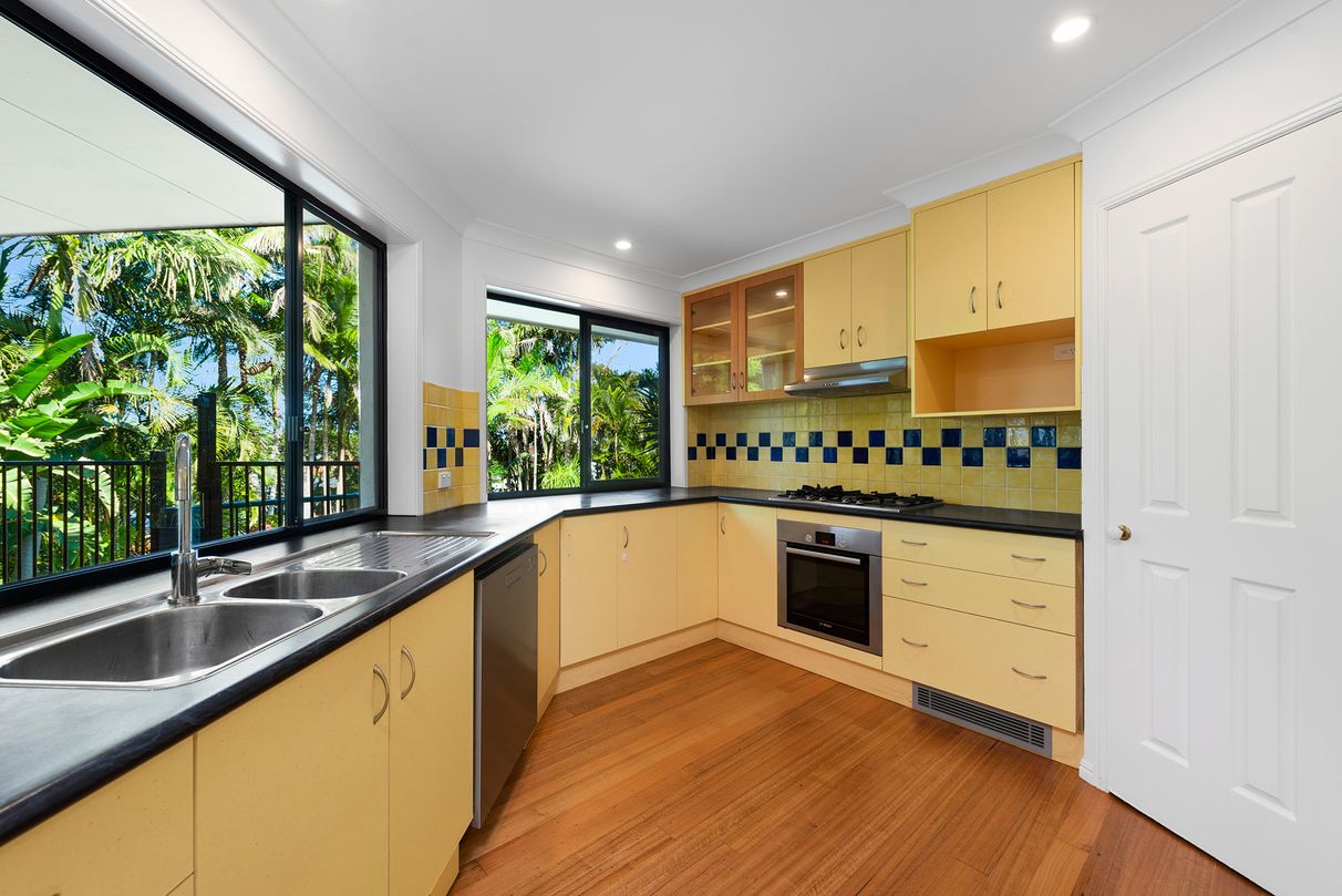 The clever plan showcases a freshly painted colour palette, freshly polished wooden floors and large windows allowing the tranquillity to seep in. The modern kitchen and open plan living sit up in the tree canopy surrounded by lush green views out every window. Flowing out to an enclosed verandah on one side and an open entertainment area overlooking the 13m pool on the other, enjoy relaxing in your very own private oasis. The parents’ retreat boasts an ensuite with a spa bath and balcony allowing you to unwind in total bliss.