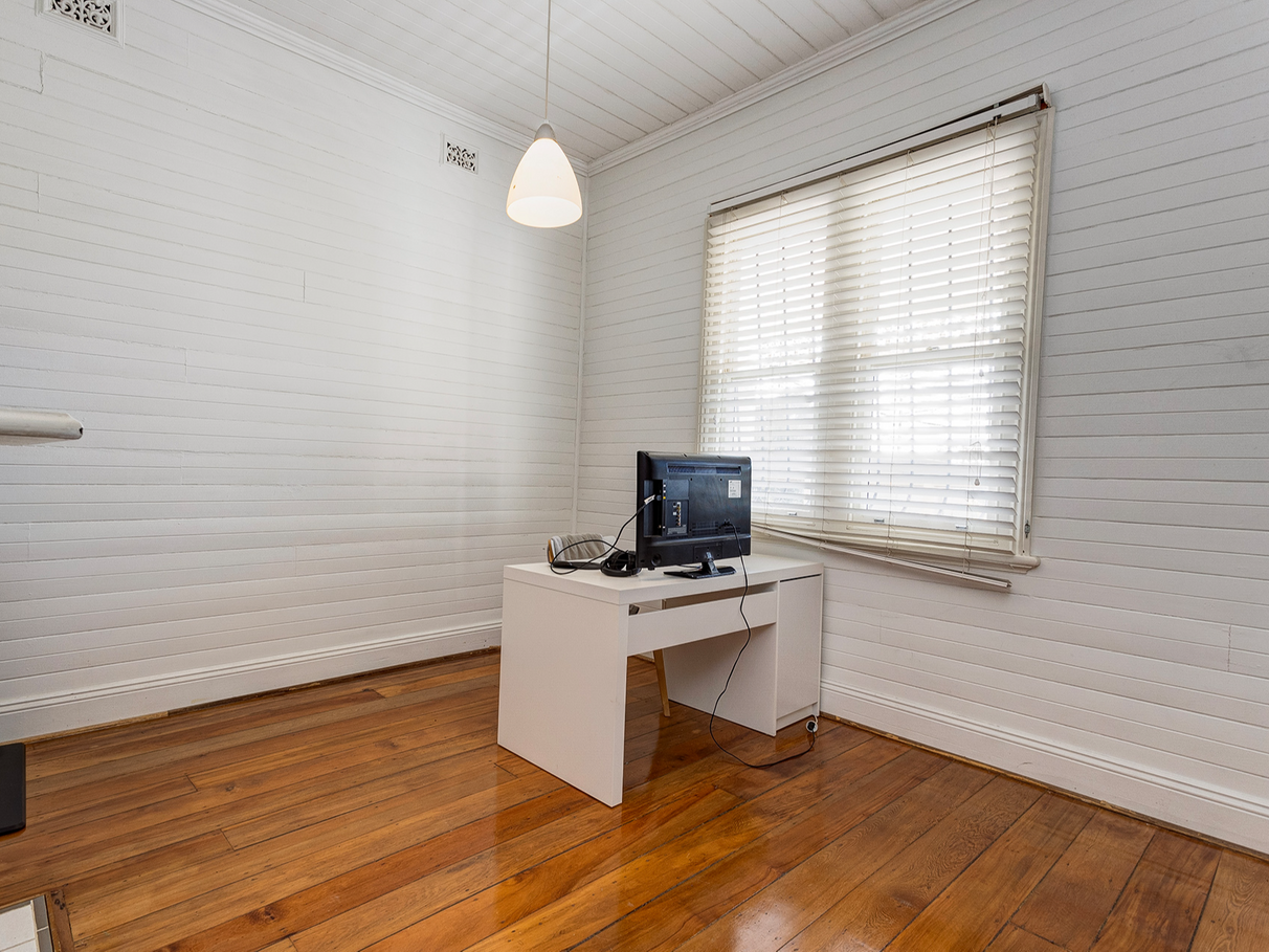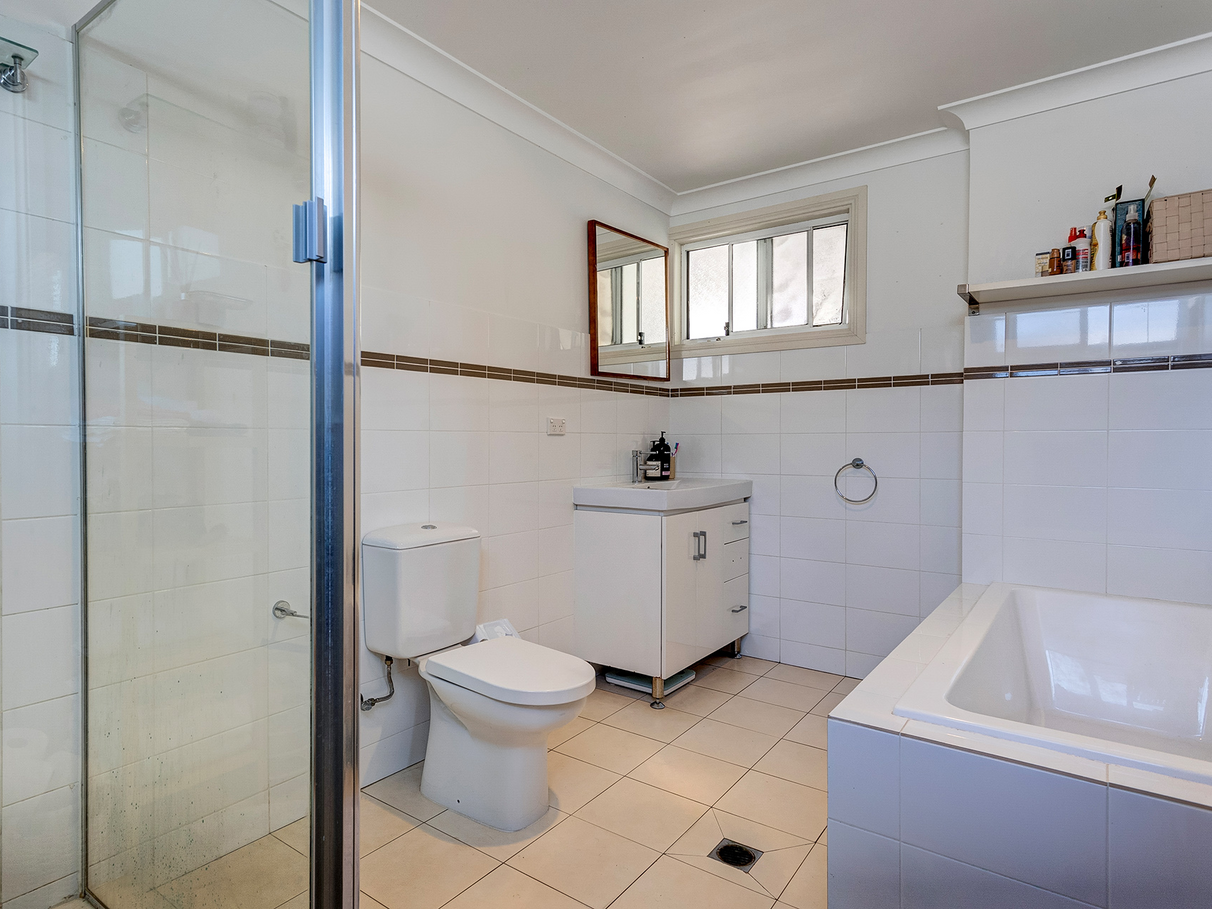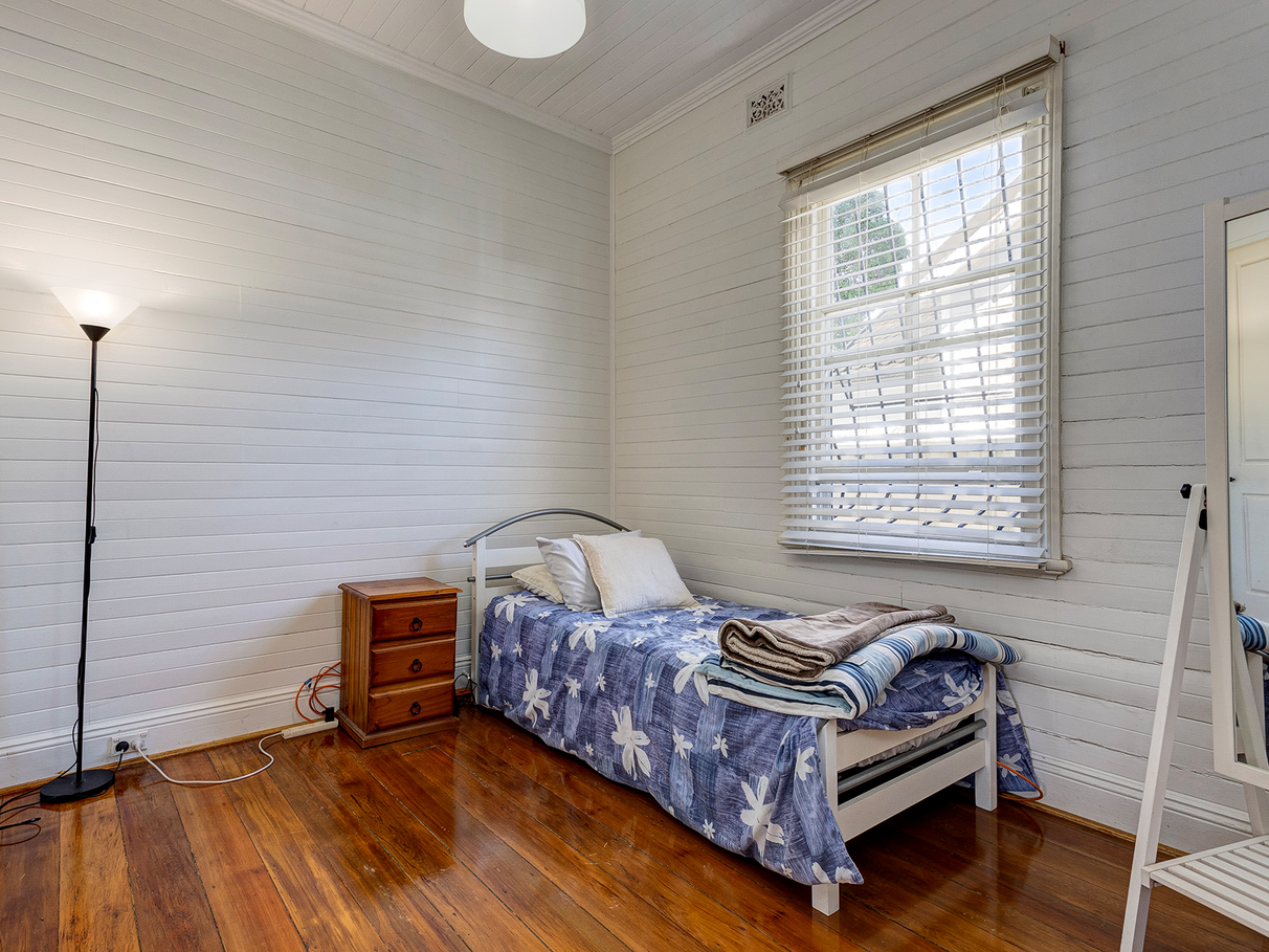 The bathroom offers a soothing retreat, with a separate shower and bath to suit your preferences. The polished timber flooring adds a touch of warmth and character to the space, embracing the best of both worlds.