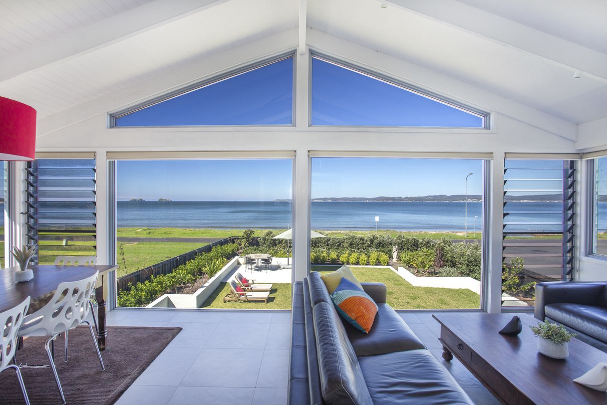 This property presents an opportunity to own a beach front position with sweeping views taking in the full length of Longbeach plus across to Snapper Island and out to Tollgate Islands from the living areas and kitchen.
