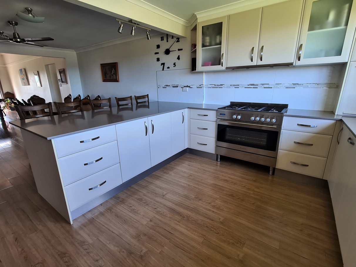 - Open Plan Family and Dining rooms plus Large Kitchen with Modern Appliances and Stone Benchtops.