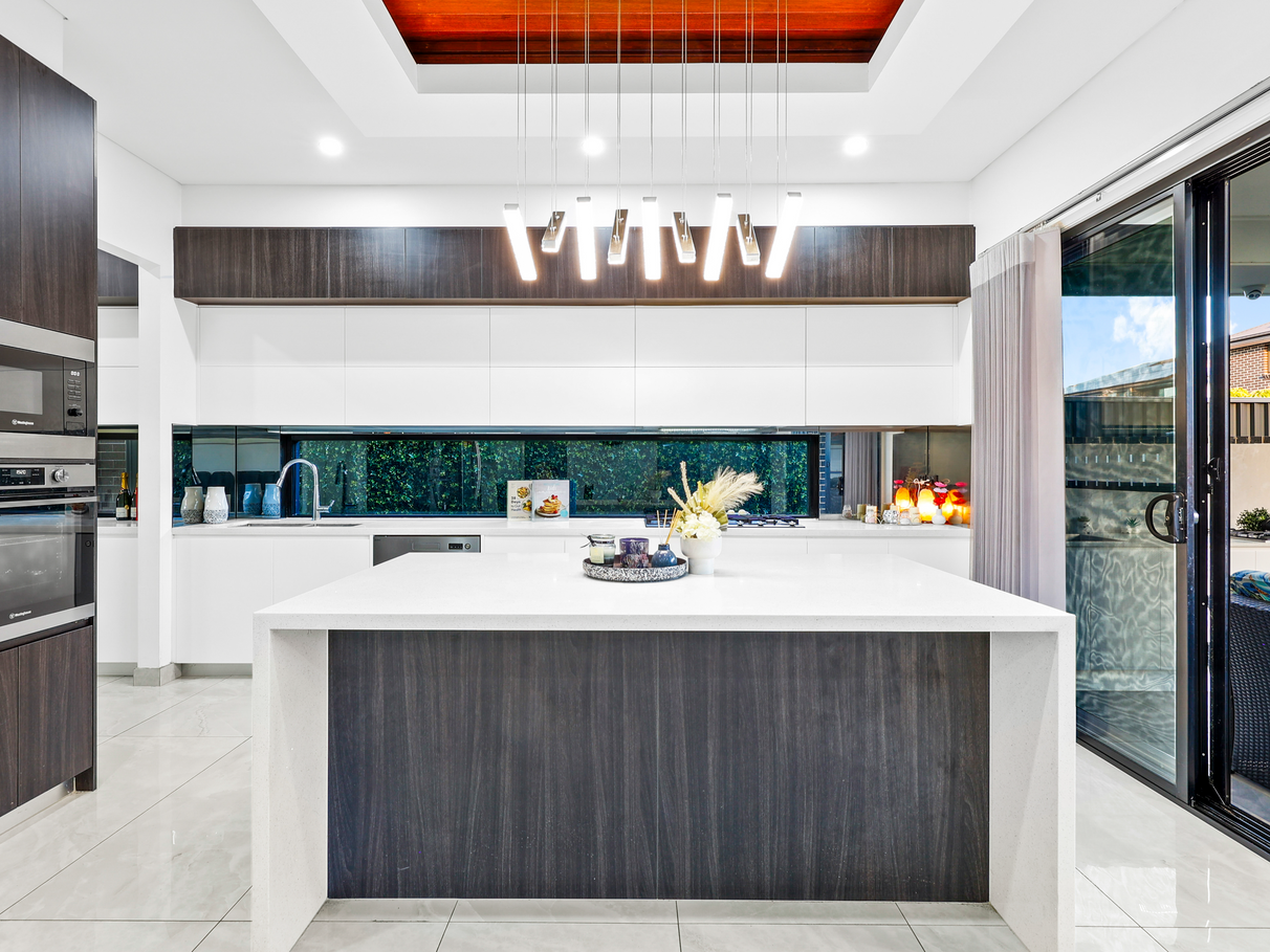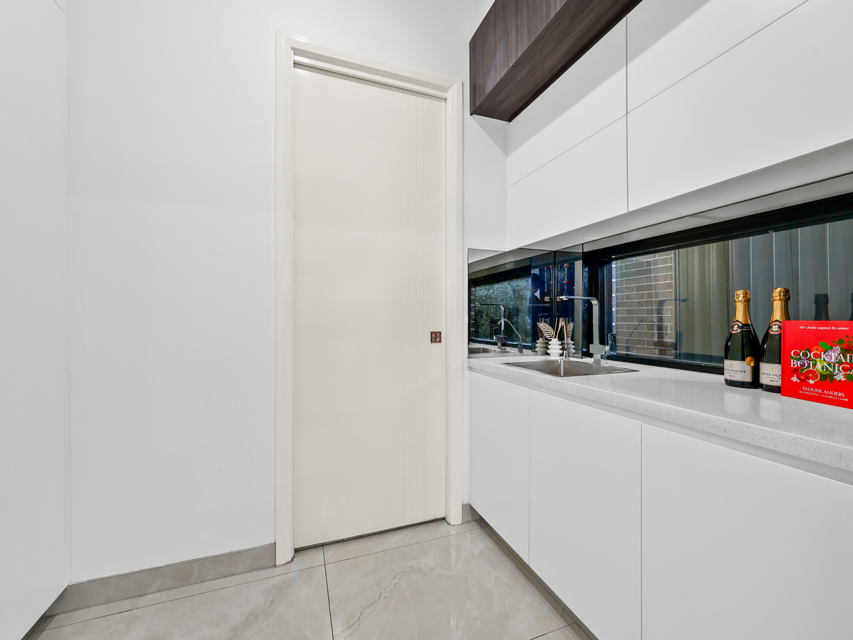TWO Kitchens one inside the house with additional butler's pantry & another one in the alfresco to entertain your family and friends . The contemporary kitchen is a chef's delight, featuring high-quality appliances, ample storage, and a convenient breakfast bar. Whether you're preparing a quick meal or hosting a dinner party, this kitchen has everything you need. Step outside to discover a low-maintenance backyard, perfect for children to play or for hosting weekend parties with family and friends.