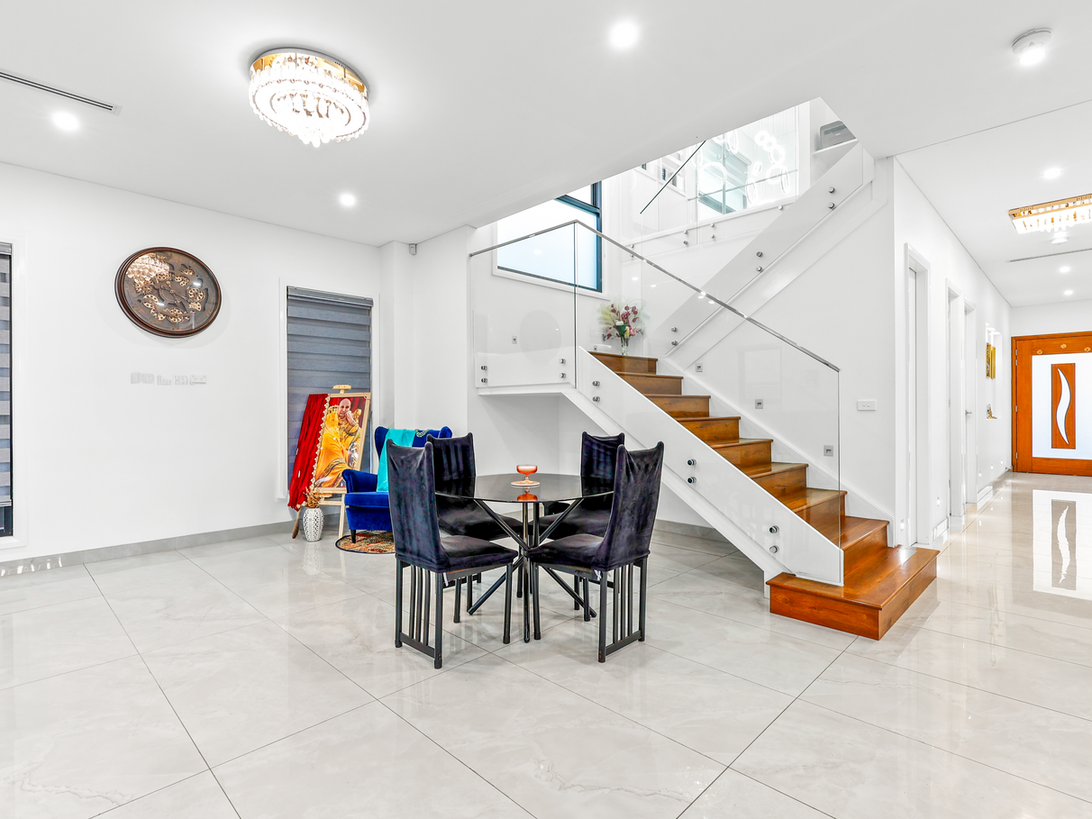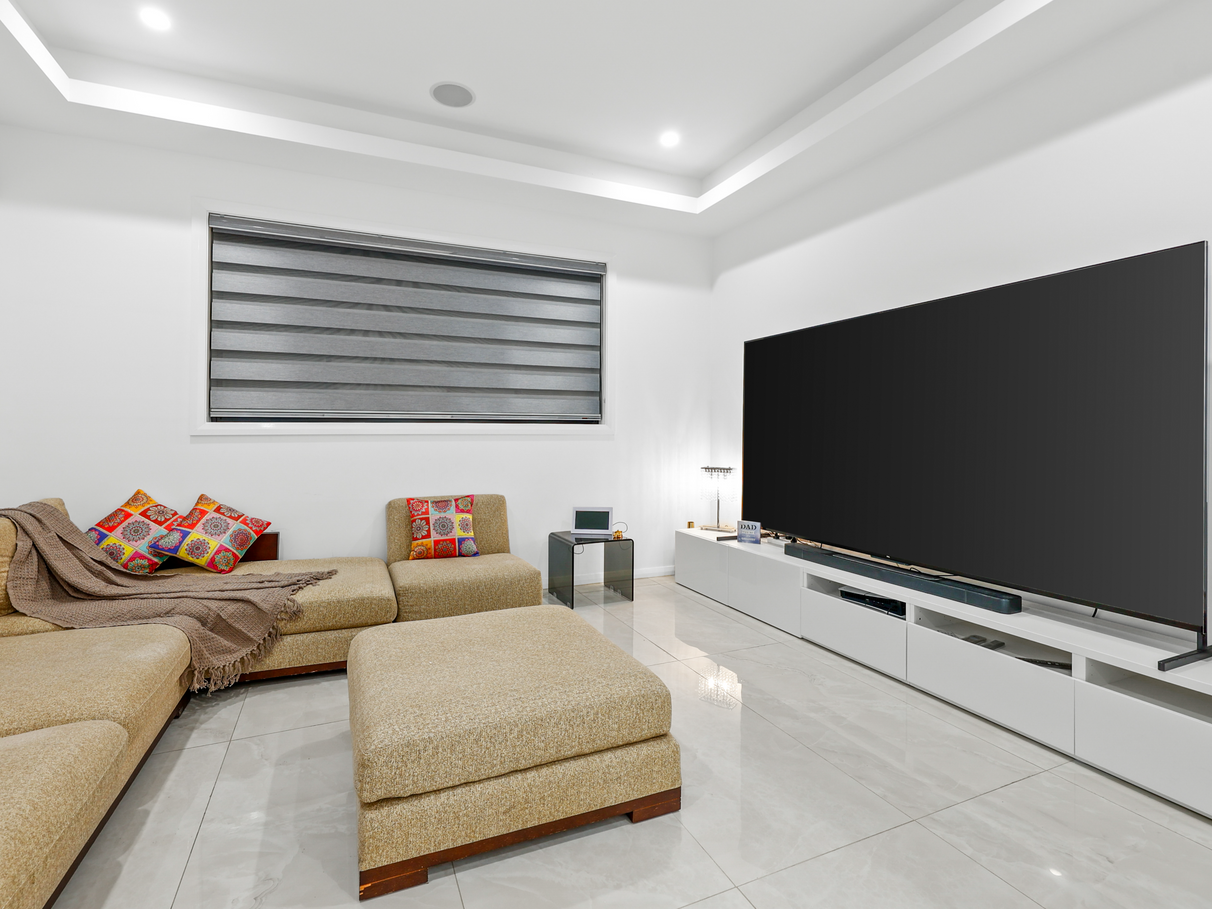 3m High Ceilings with two separate living areas downstairs adding more space one for formal meetings and for your loved one's... Media/Living room is perfect for movie lovers with perfect light and sound system setup . Enjoy the generous open-plan living and dining area, perfect for family gatherings and entertaining guests. Large windows flood the space with natural light, creating a warm and welcoming atmosphere